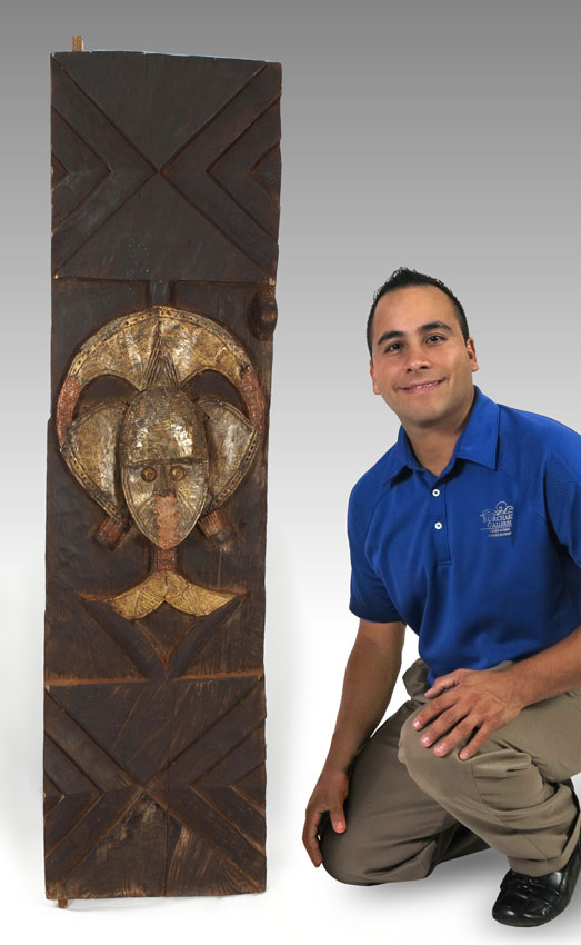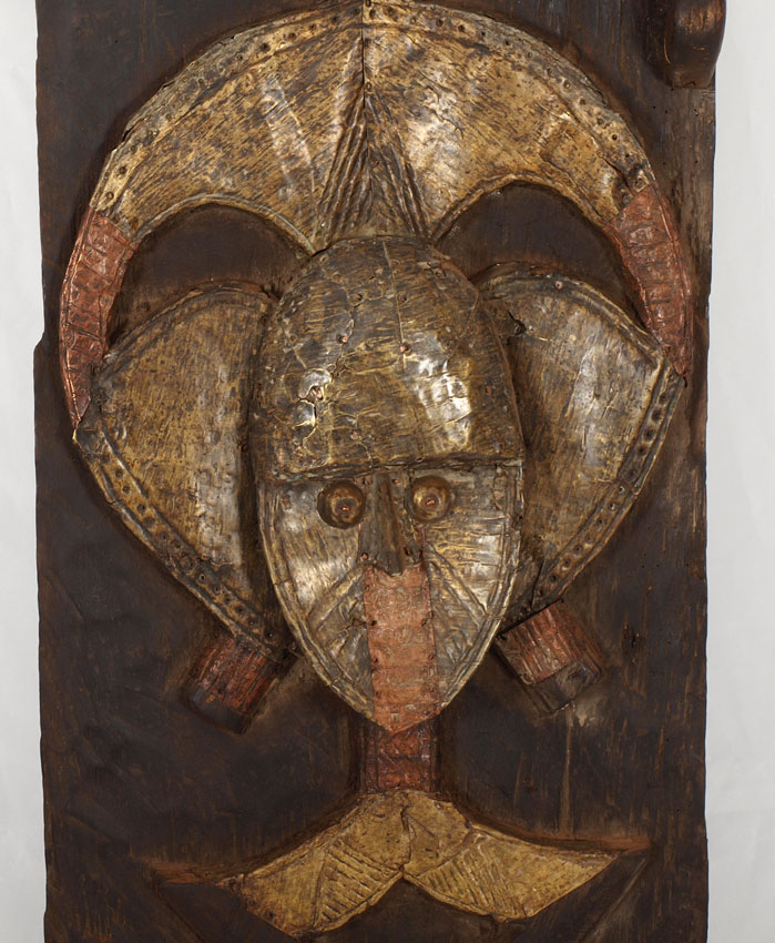 CARVED AFRICAN BAKOTA DOOR PANEL - GABON: 18LBS., 53'' x 13 1/2'' x 3''.