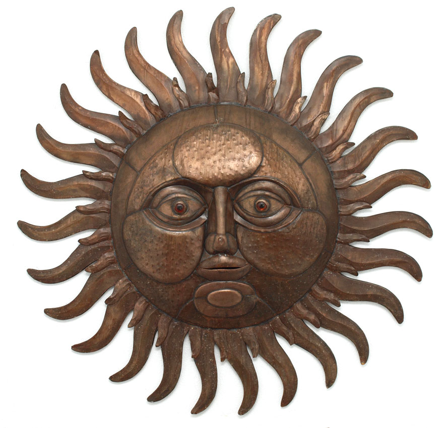 AFRICAN METAL SUN WALL DECORATION: 8.5 LBS., 50''dia x approx. 6''deep.