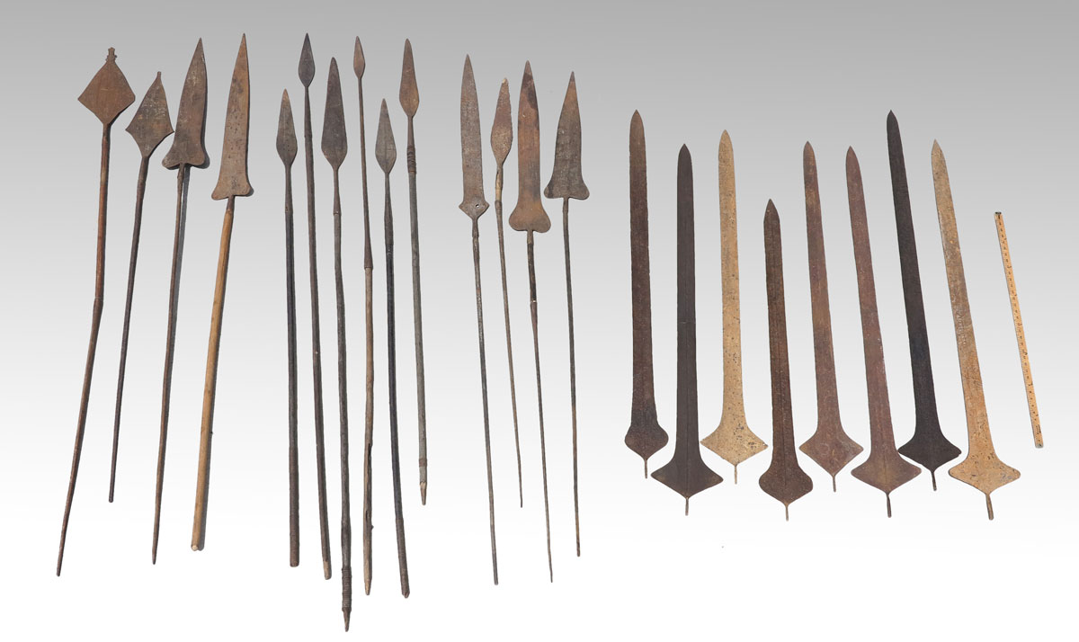 LOT OF CARVED AFRICAN SWORDS & SPEARS