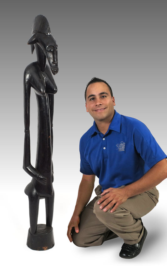 CARVED AFRICAN SENUFO POUNDER: 19.5 LBS., 52'' x 8'' x 9''.