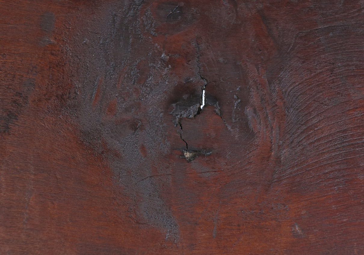 CONDITION: Wear consistent with age, note missing small section of bottom trim and visible knot hole in top.