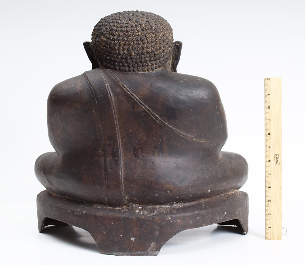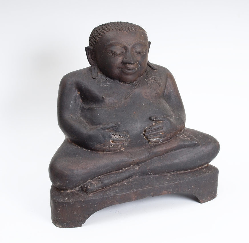 LARGE CAST BRONZE SEATED BUDDHA: Figure of a seated ''Fat'' or ''Happy'' Buddha. 17 3/4'' h. x 17'' x 9''. Actual age unknown.