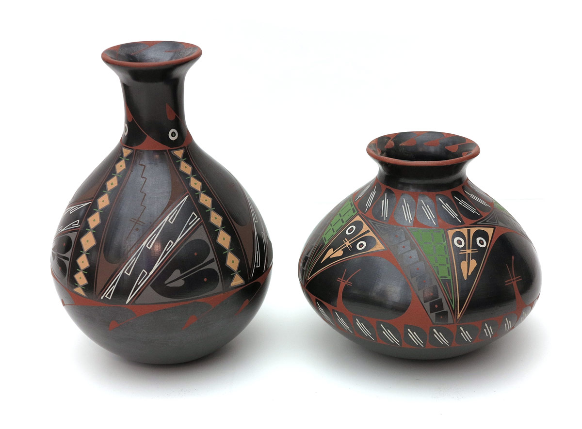 2 PIECE MATA ORTIZ POTTERY SIGNED ''YOLI R'': 2 pottery vessels with polychrome geometric designs, each signed by the artist, Yoli R. from Mata Ortiz Pottery. Larger of the 2 measures 8'' h. x 5 1/4''.