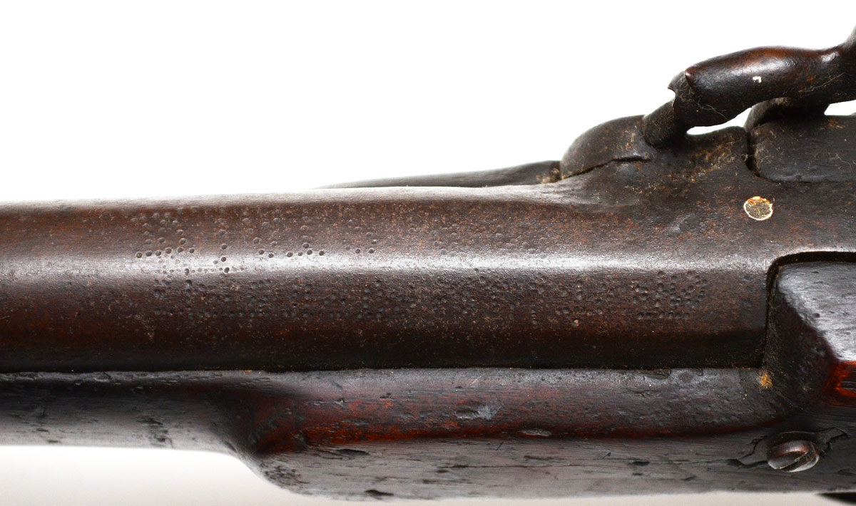 CONDITION: Considerable wear from age and use all over, barrel damage at muzzle. Please call for condition. Burchard Galleries does not recommend firing ANY antique weapon regardless of condition.