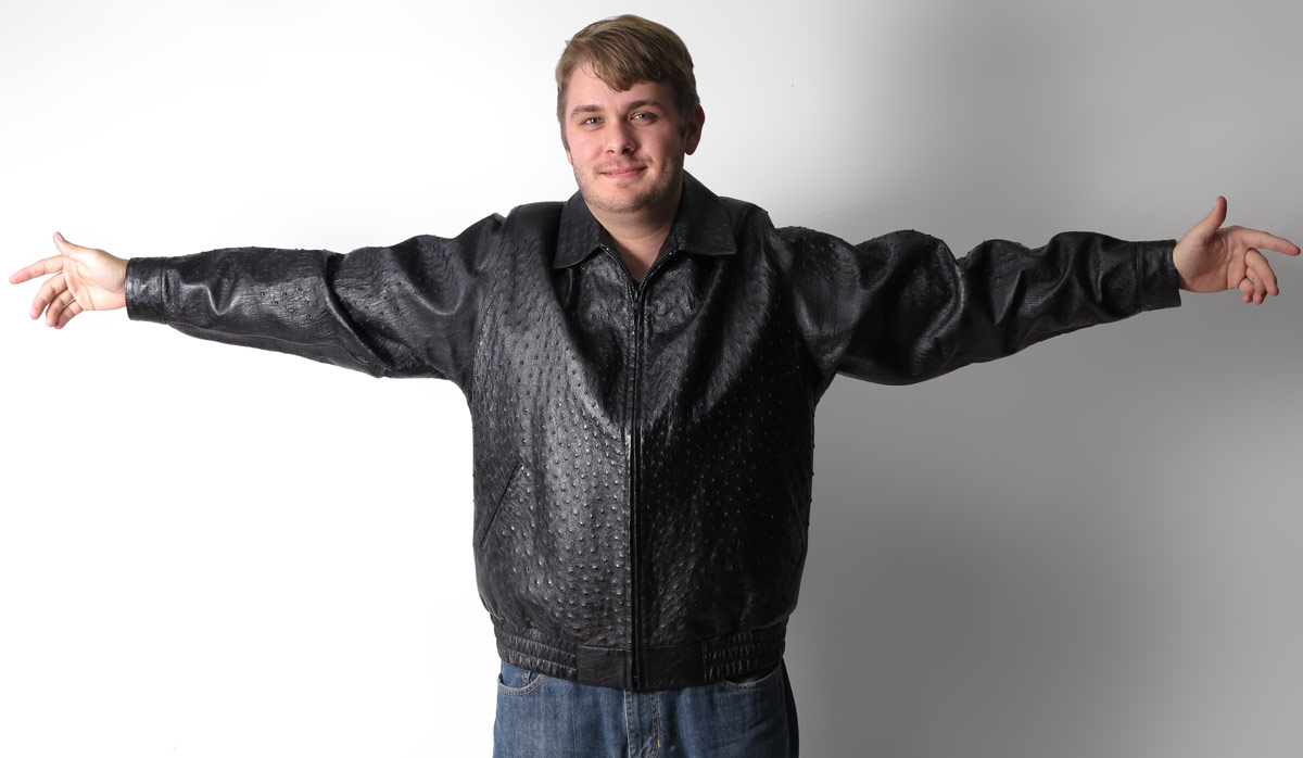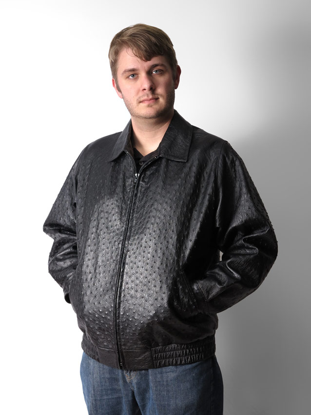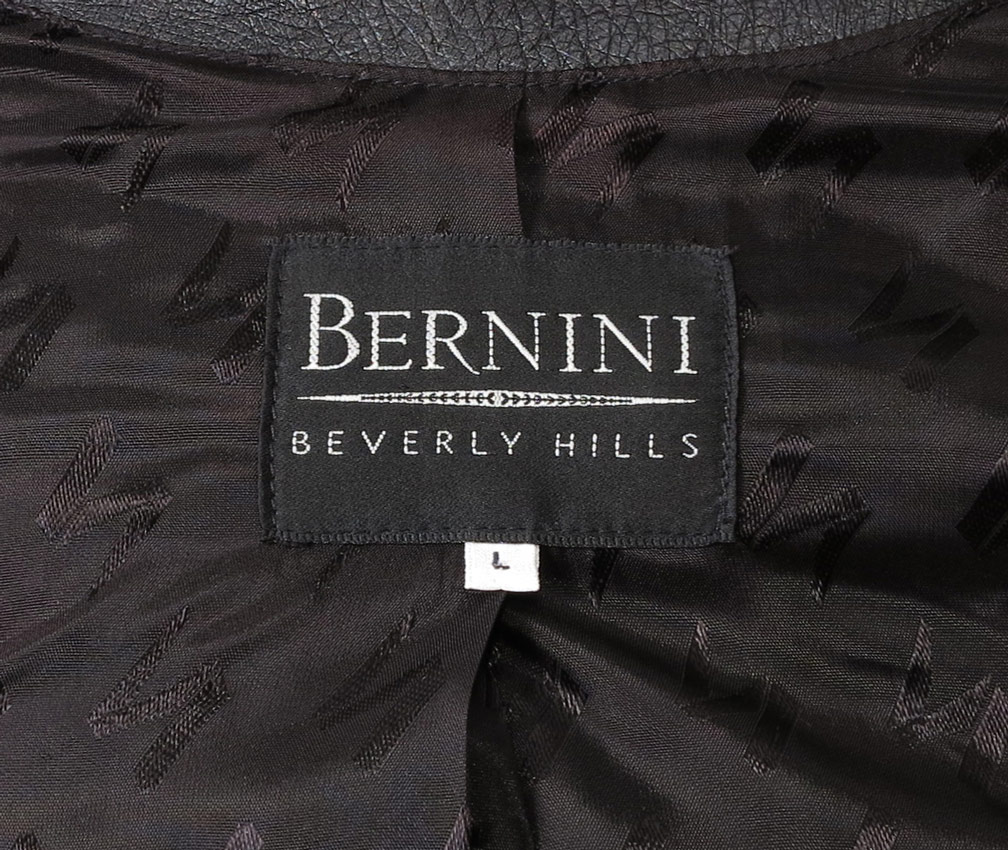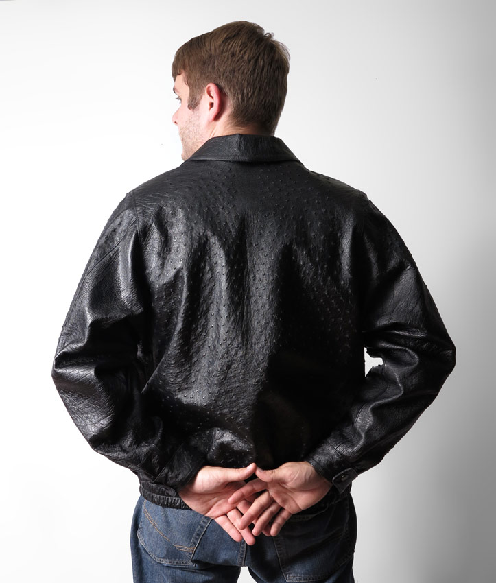BERNINI MEN'S OSTRICH BLACK LEATHER JACKET: Size large. Bernini Beverly Hills Label.