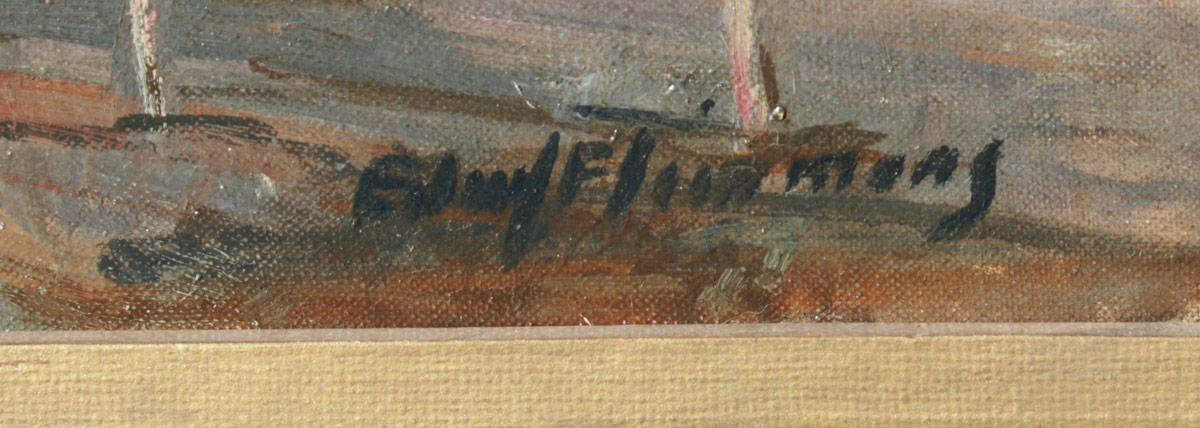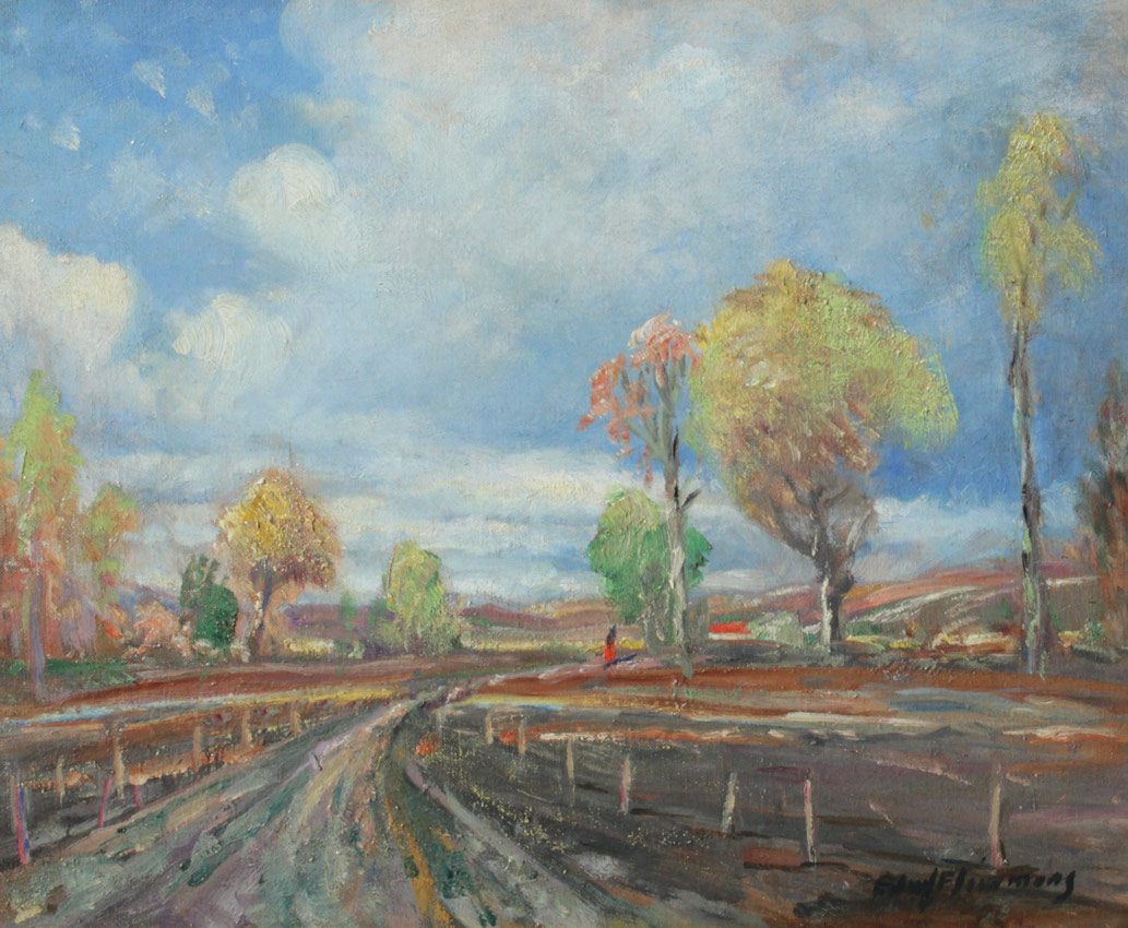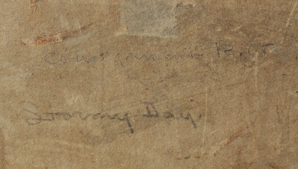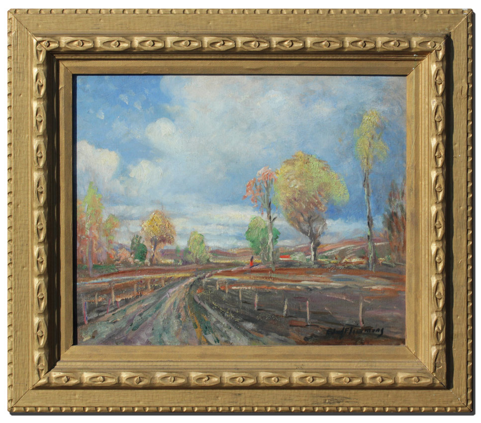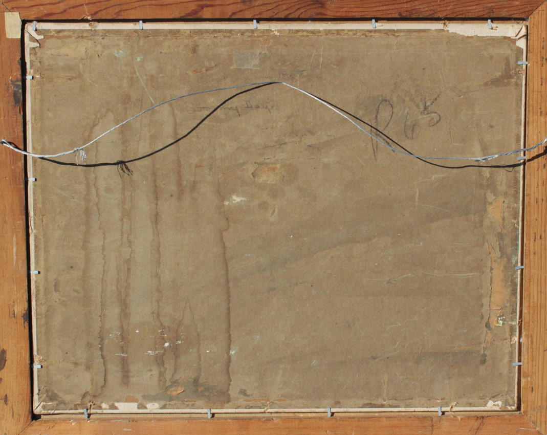 SIMMONS, Edward Emerson, (American, 1852-1931): ''Stormy Day'', Oil/Canvasboard, 16'' x 20'', signed lower right, titled in pencil verso, encased in painted and carved frame with wear 23 1/4'' x 27 1/4''.