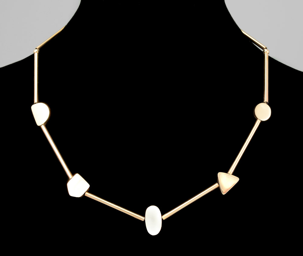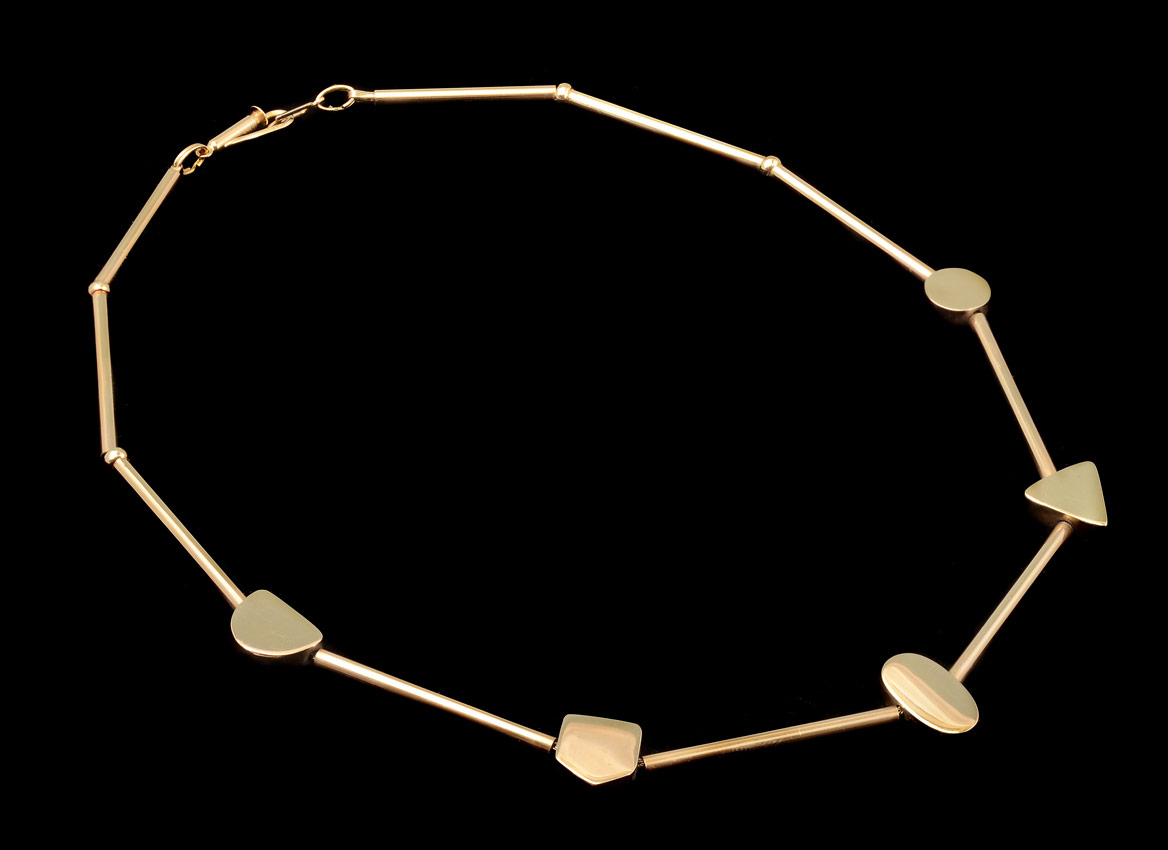 C. WALLING 14K GEOMETRIC NECKLACE: 14K yellow gold necklace with batons, beads and geometric shapes. Weight: 15.0 grams Length: 14'' Signed: C. Walling