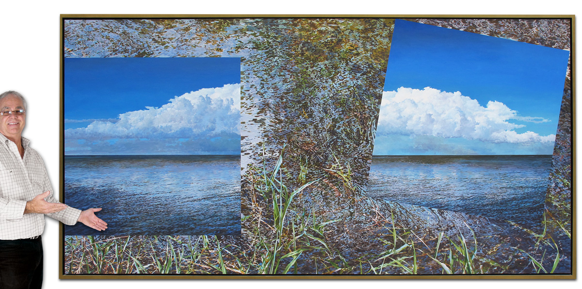 MARSH, Bruce, (American, 1937- ): ''Double Cloud'', Oil/Canvas, 60'' x 120'', signed lower right and dated '92, framed, 63'' x 123'', titled verso. Originally commissioned for over 10,000 dollars.