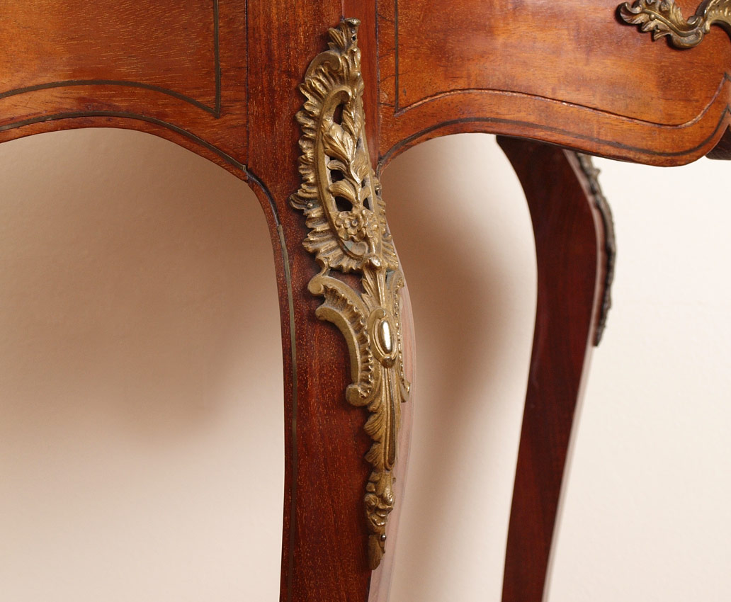 CONDITION: Note repair to sections of boulle inlay, chip on skirt, other wear consistent with age and use.