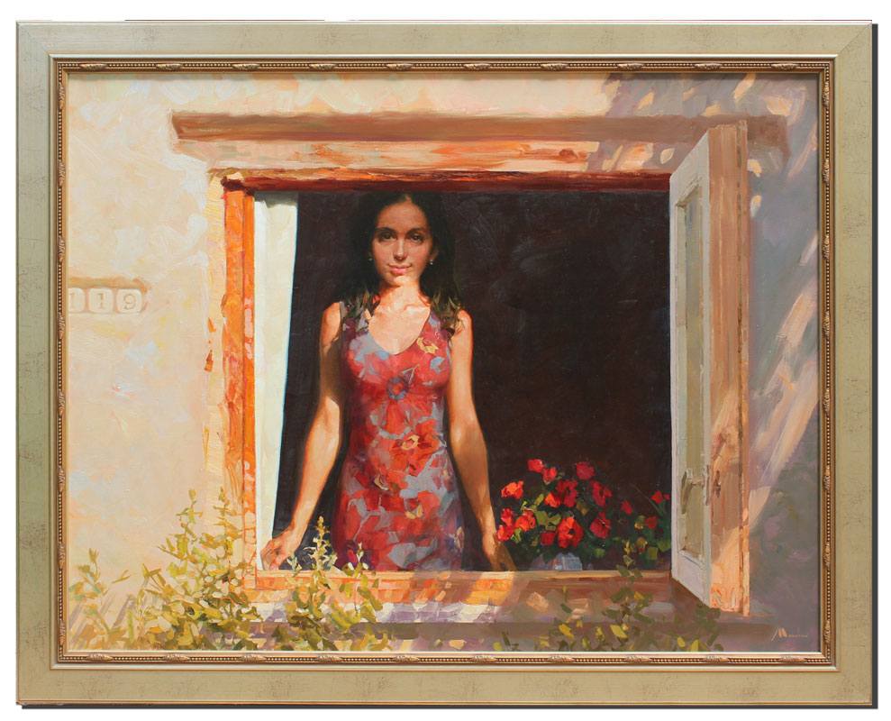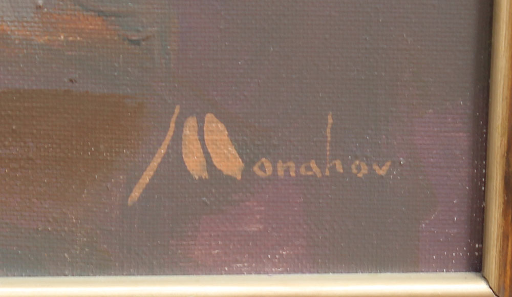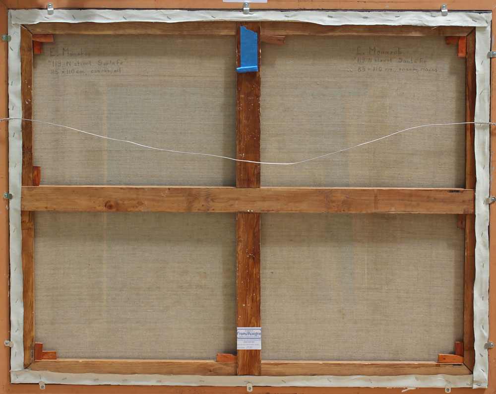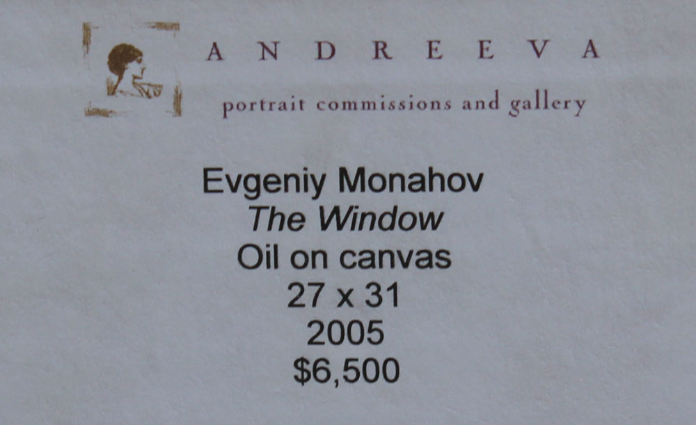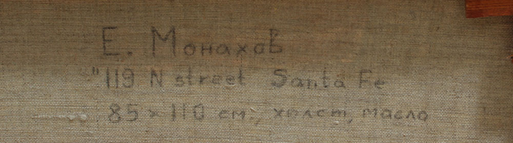 MONAHOV, Evgeniy, (Russian/American, 1974-): ''119 North Ave'', OIL/Canvas, 33 3/4'' x 43 1/2'', signed lower right, signed and titled verso, Andreeva label affixed verso with original price of $6500, custom frame, 39 1/4'' x 49''. Studied at Moscow Art College and Surikov Institute with Abakumov and Sidorov, Member of the Artist's Union of Russia. Paper work included with artist's exhibition history at the time of the paintings purchase, along with original receipt from Andreeva for $6,175.00.
