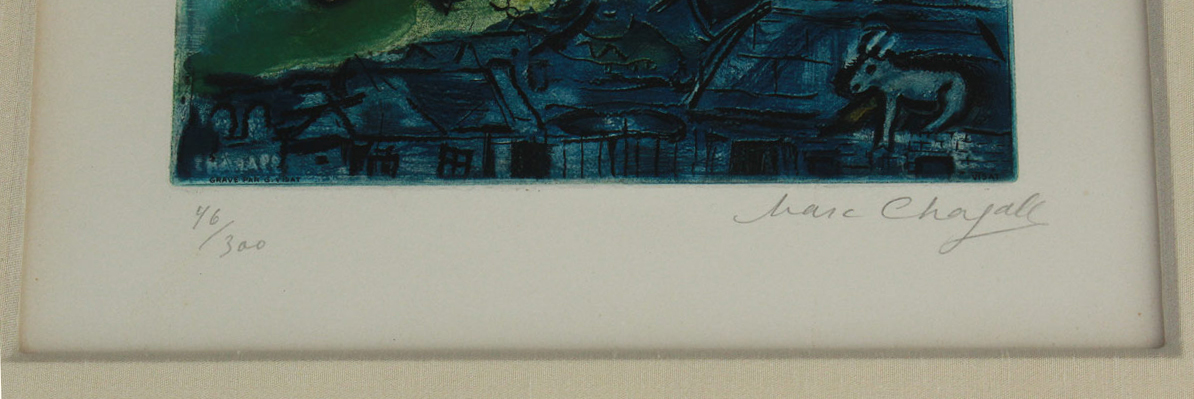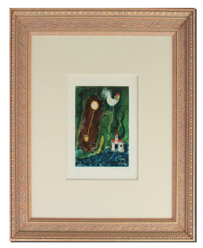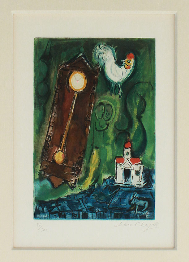 CHAGALL, Marc, (French, 1887-1985)After: Rooster & Clock, Etching and Aquatint, sight size with margins 15 3/4'' x 12 1/4'', pencil signed lower right, #'d 46/300 lower left, custom framing 34 1/2'' x 31''.