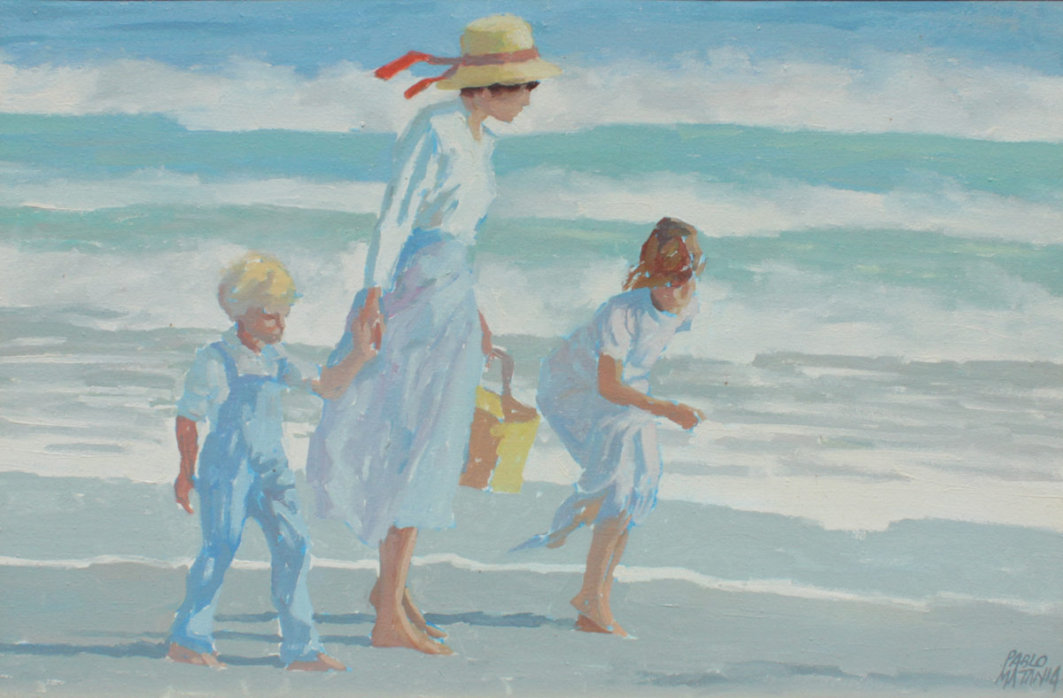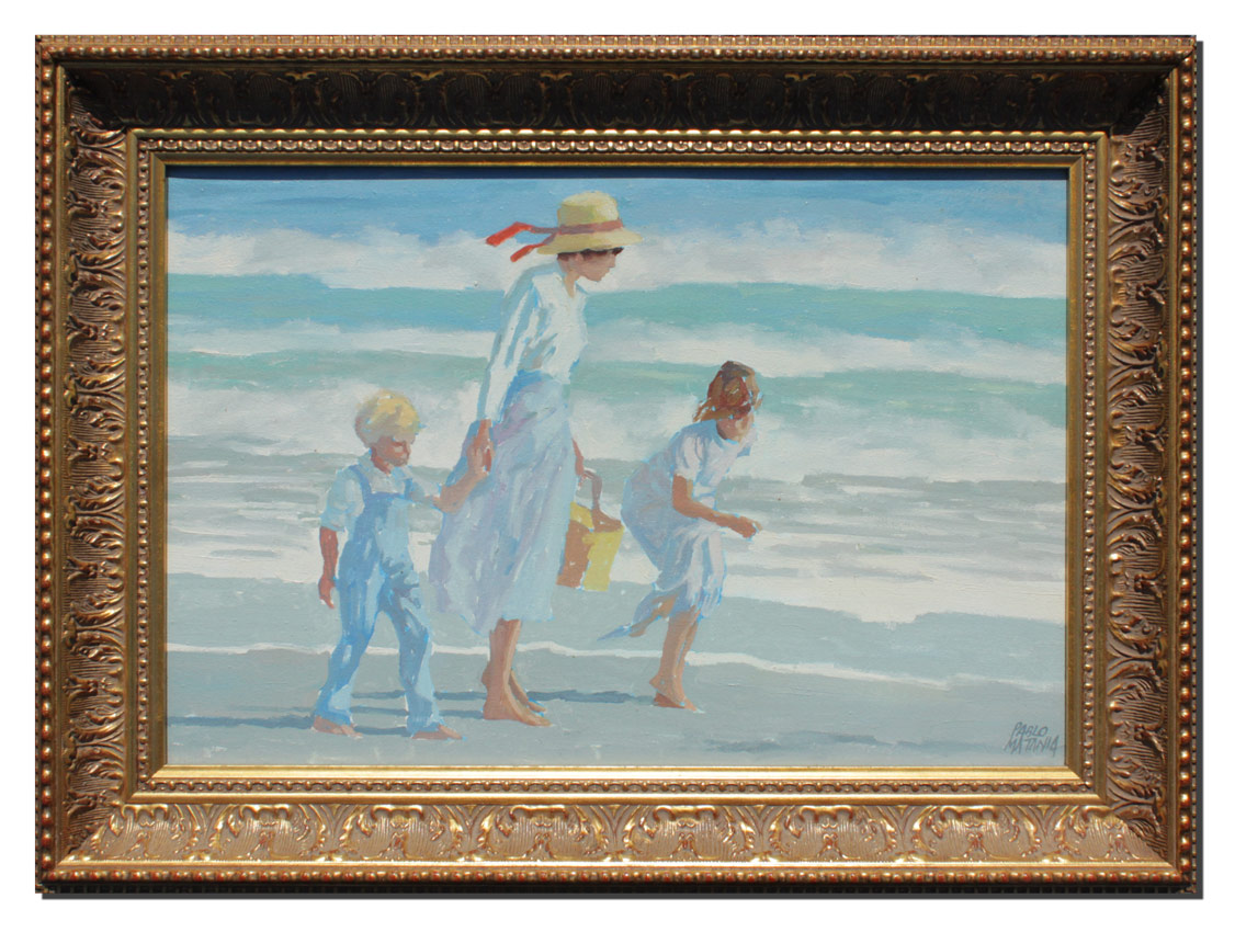 MATANIA, Pablo, (Brazilian, 20th Century): Impressionist Scene with Mother & Children on Beach, Oil/Canvas, 12'' x 17 3/4'', signed lower right, framed, 16 1/4'' x 22''.