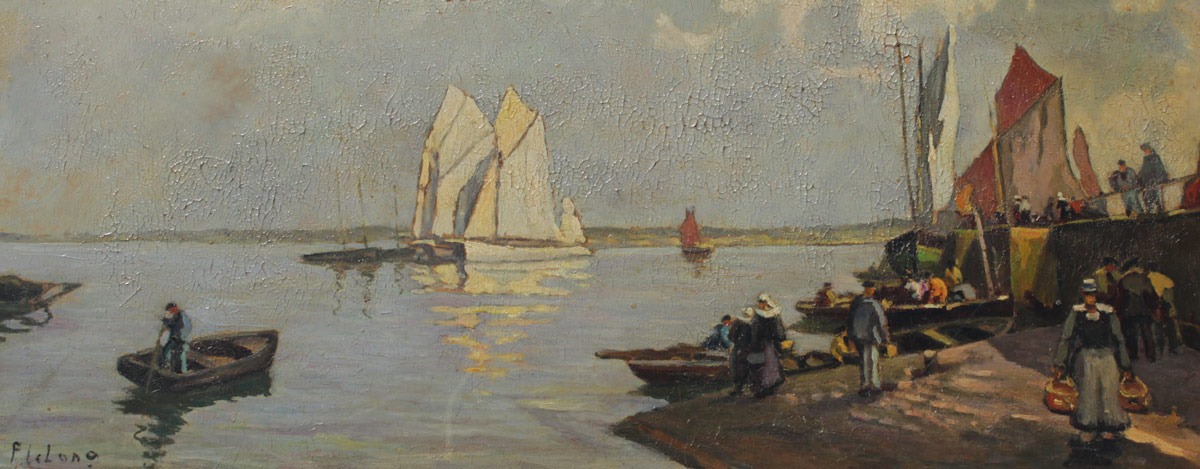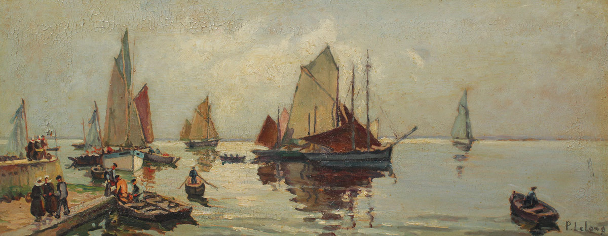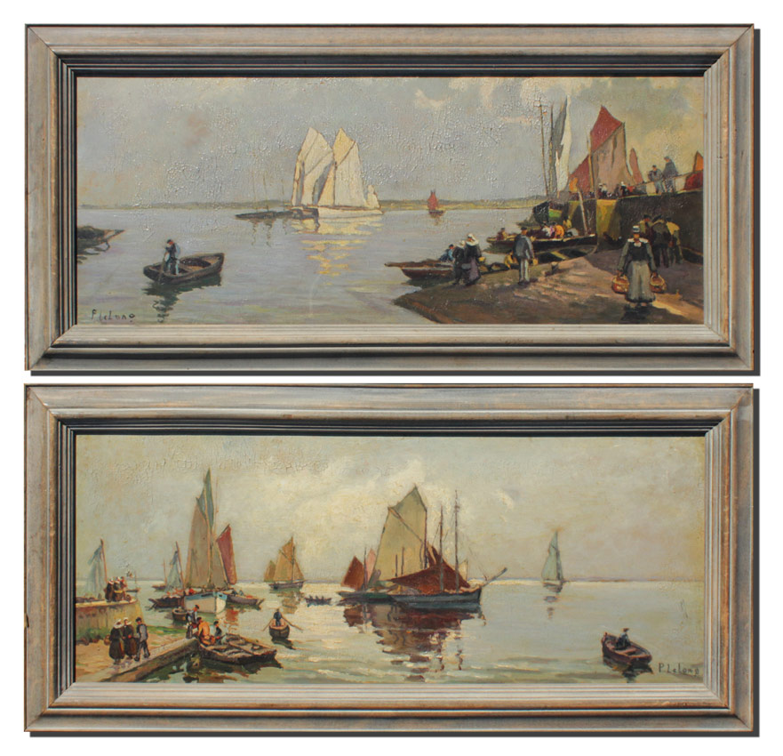 LELONG, Pierre Emile, (French, 1908-1984): Pair of Busy Harbor Scenes, Oil/Masonite, 10 1/2'' x 25 1/2'', signed, framed, 14'' x 29''.