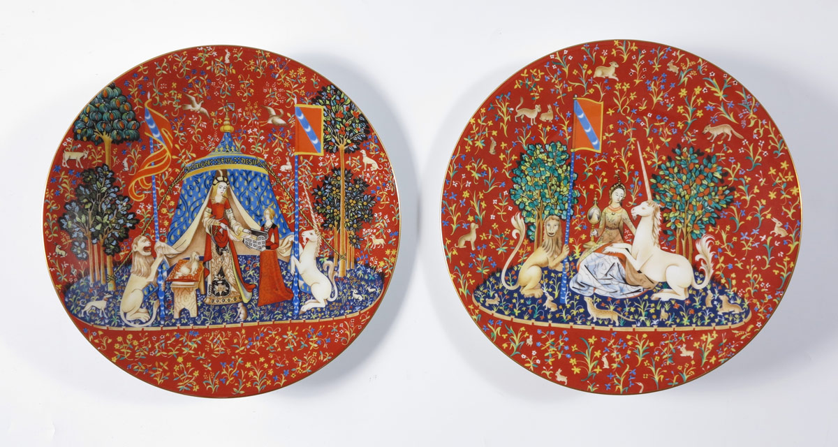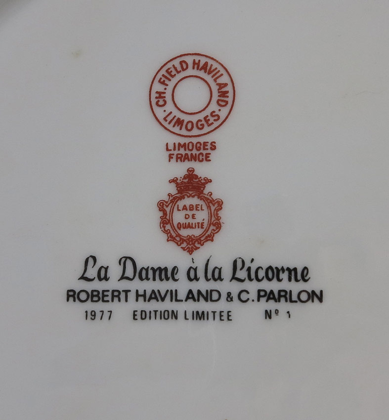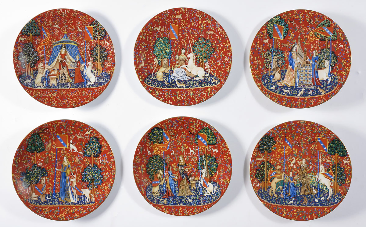 6 ROBERT HAVILAND & CO LIMOGES FRANCE La DAME a la LICORNE PLATES: Lovely Limited Edition collector plates dated 1977 through 1982, 9 7/8'' dia.