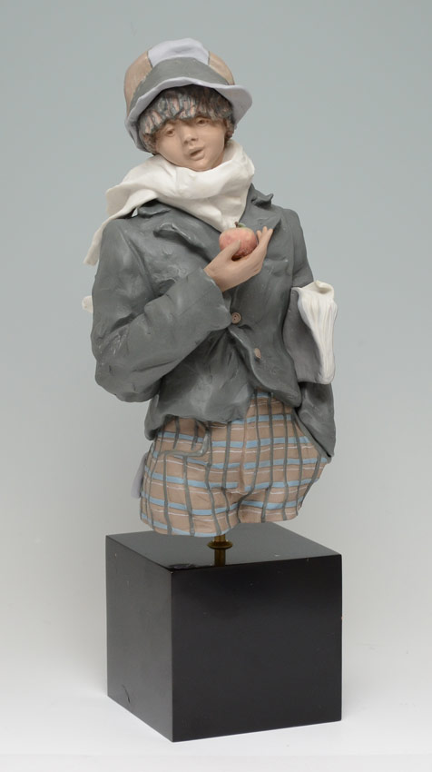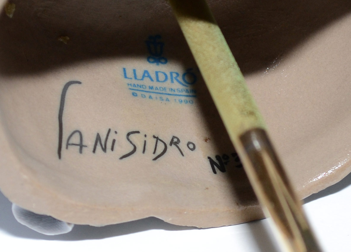 LLADRO PORCELAIN FIGURINE ''APPLE SELLER'': #1752, Enrique Sanisidro sculptor, issued 1991 retired 1993, sold with plinth and box. Overall 11 3/4''h., box approx. 10 1/2''h. x 16'' x 16''.