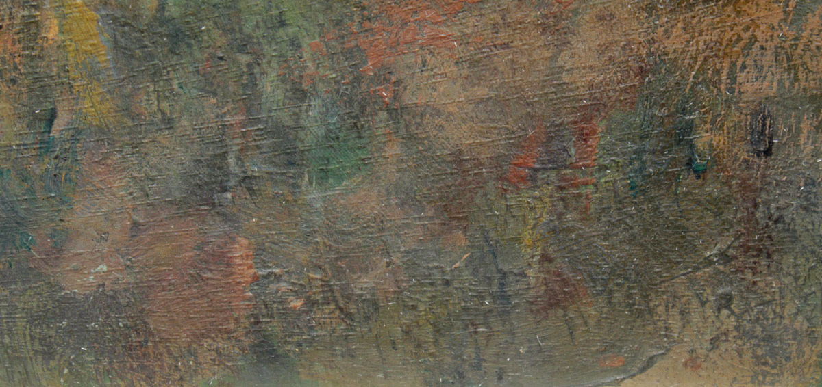 CONDITION: Craquelure scattered throughout, needs cleaning.