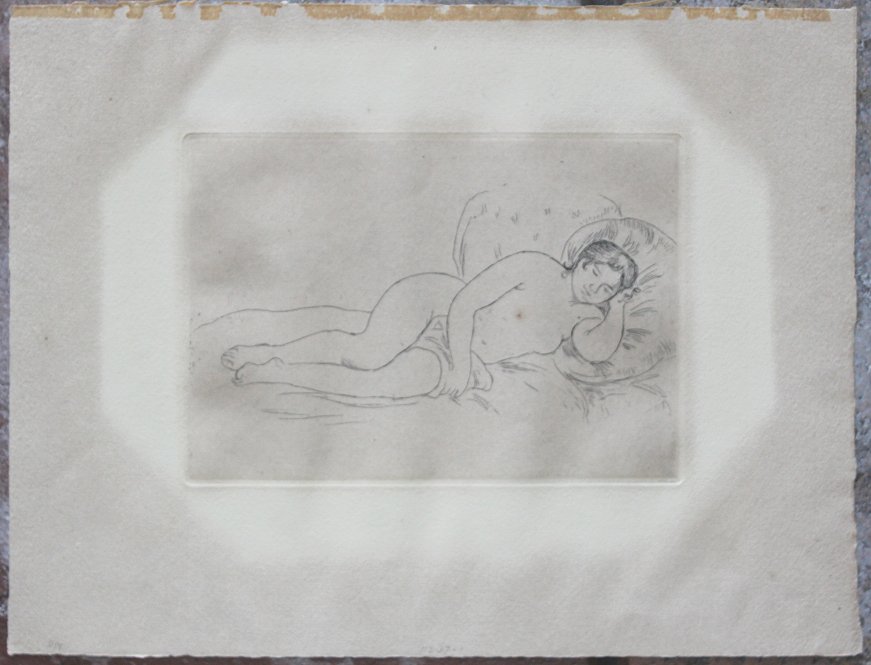 RENOIR, Pierre Auguste, (French, 1841-1919): ''Femme nue couch‚e - Tourn‚e … droite (2e planche)'', Etching, 10'' x 13 1/4'', unframed.