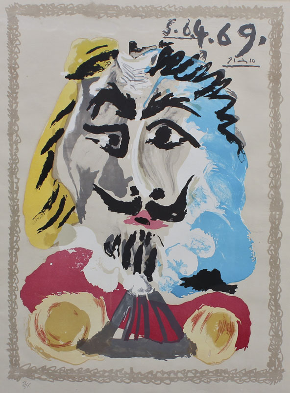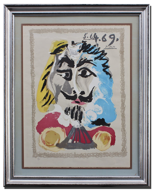 PICASSO, Pablo, after, (Spain, 1881-1973): Lithograph from ''Portraits Imaginaires'', 26'' x 20'', signed in the plate, dated '69, numbered lower left 53 of 375, encased in silver gilt frame, 33 1/2'' x 27 1/2''.