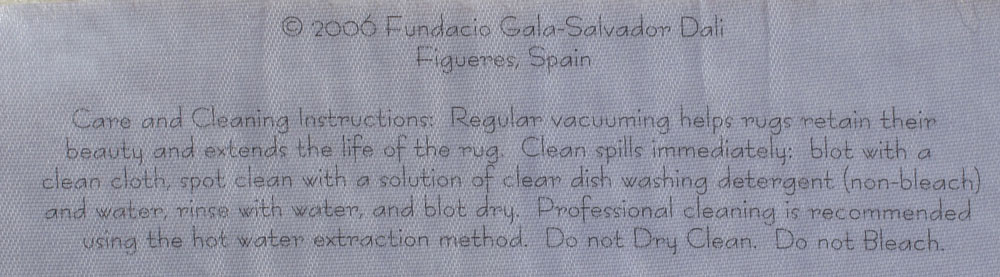 SURREAL RUG AFTER SALVADOR DALI: Machine made carpet, 39'' x 59'', 2006 Fundacio Gala-Salvador Dali Figueres label verso.