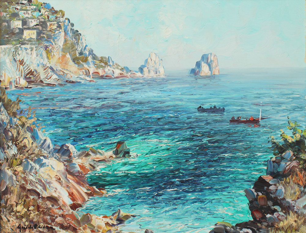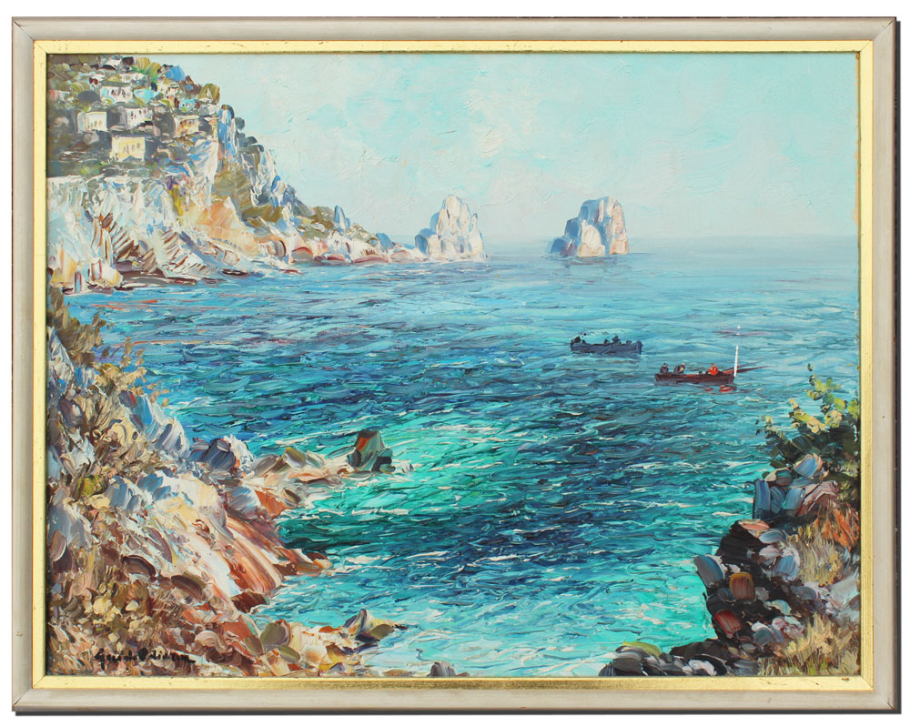ODIERNA, Guido, (Italian, 1913-): Capri Coastal Scene with Fishing Boats, OIL/Canvas, 15'' x 19 1/2'', signed lower left, framed, 17'' x 21 1/2''.