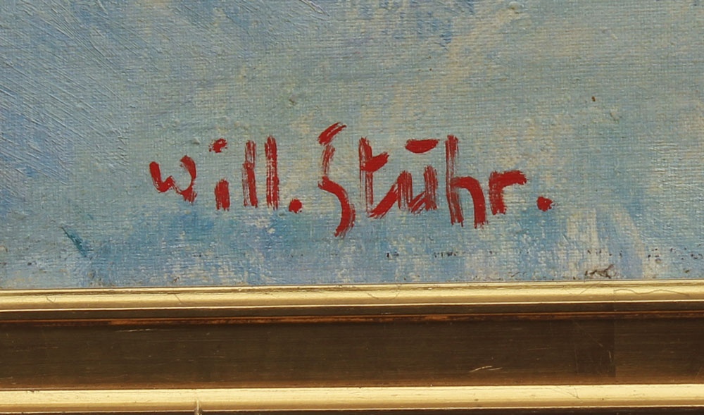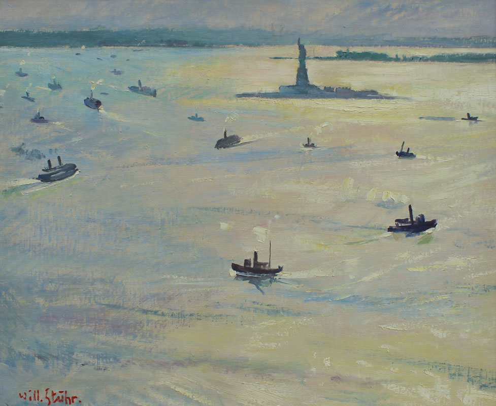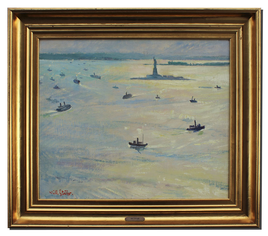 STUHR, Will, (Denmark, 1882-1958): New York Harbor with Statue of Liberty, OIL/Canvas, 19 1/4'' x 23 1/4'', signed lower left, gilded frame with wear, 25'' x 29''.