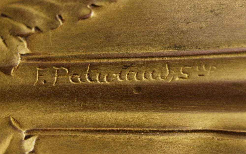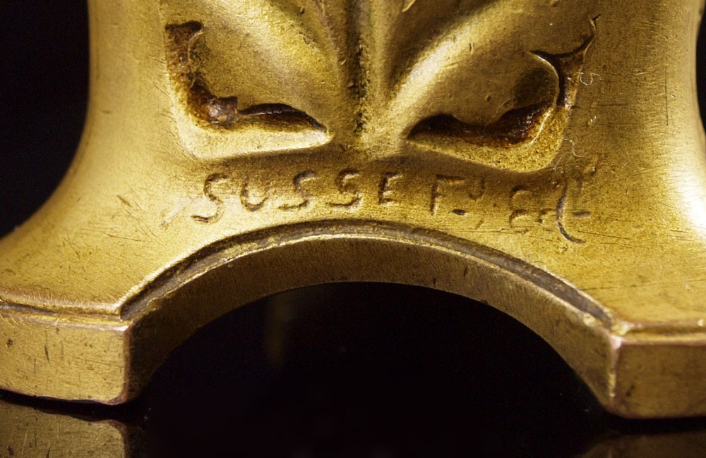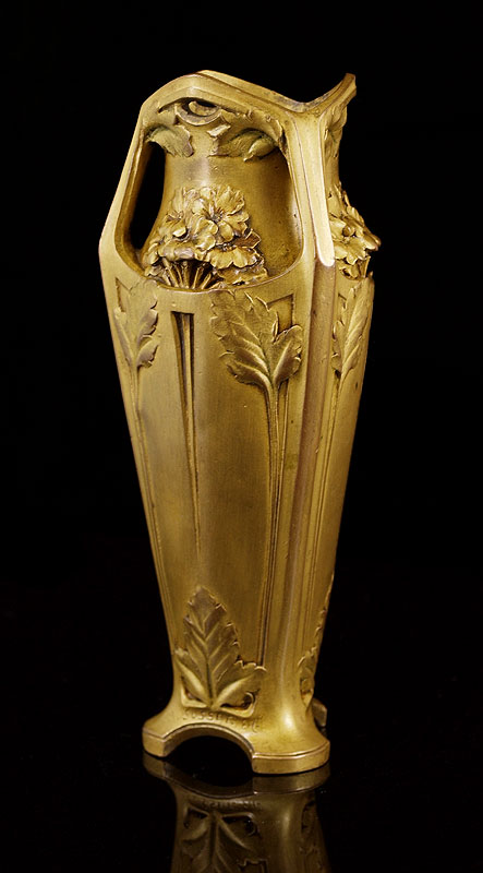 PATURAUD, F., (French, 19/20th C.): Nouveau Handled Bronze Vase, 6 1/2'' h, signed, marked Susse Foundary.