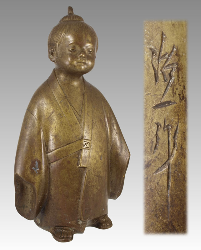 CHINESE BRONZE FIGURE OF A CHILD: Signed as shown. 11 1/2'' h., weighs approx. 9 lbs.
