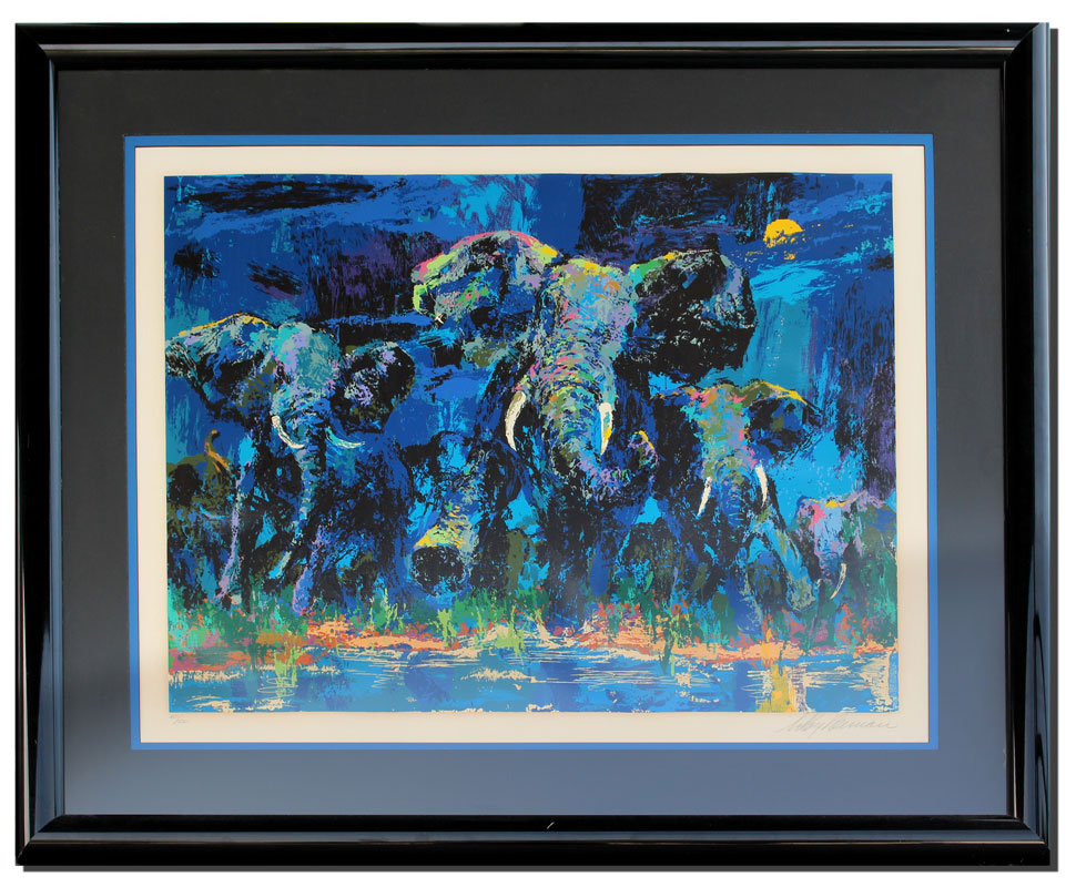 NEIMAN, Leroy, (American, 1927- ): ''Elephant Nocturne'', Serigraph, sight size 31 1/2'' x 41'', pencil signed lower right, numbered lower left 405/500, custom black frame with minor wear, 44 1/2'' x 54''.