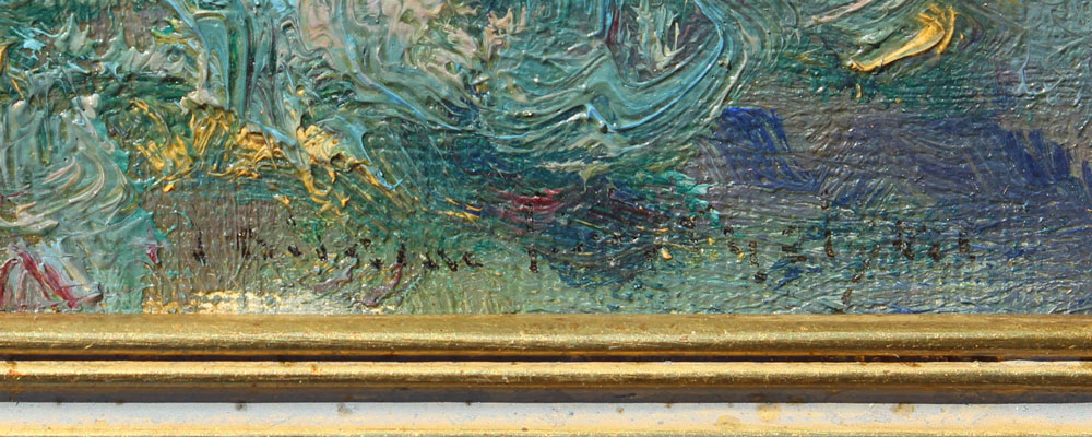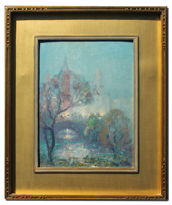 BERTHELSEN, Johann, (American, 1883-1972): Central Park Nocturne, OIL/Canvasboard, 12'' x 9'', signed lower right, signed verso, carved and gilded impressionist frame, 18'' x 13''.