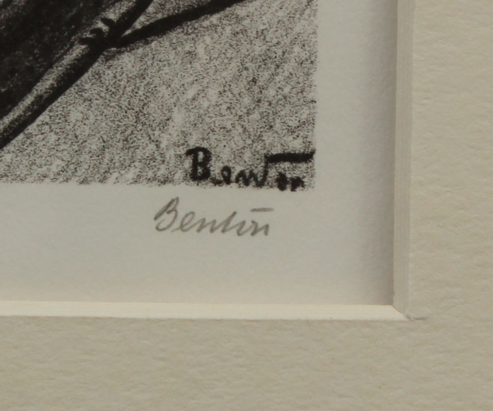 BENTON, Thomas Hart, (American, 1889-1975): Self Portrait, Lithograph, sight size 20 1/2'' x 14 1/2'', pencil signed lower right, edition of 300 lower left, fine silver gilt frame with very minor wear, 38 1/2'' x 22 1/4''.