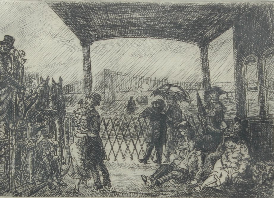 SLOAN, John, (American, 1871-1951): ''The Wake on the Ferry'', Etching, sight size 5 7/8'' x 7 7/8'', pencil signed lower right, titled along the lower margin, marked lower left 250 proofs, contemporary metal frame, 18 1/2'' x 14 1/2''.