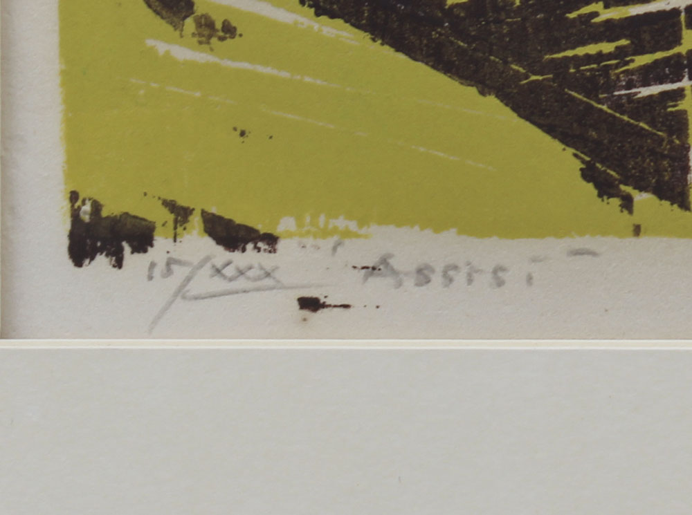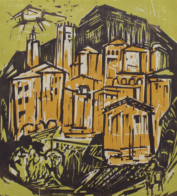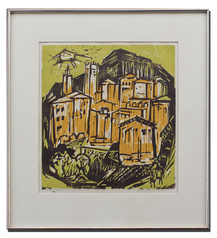 DREWES, Werner, (American, 1899-1965): ''Assisi'', Woodcut, sight size 17 1/2'' x 16 1/2'', pencil signed lower right, dated '58, numbered 15/30 lower left, titled, custom frame, 26'' x 24 1/2''.