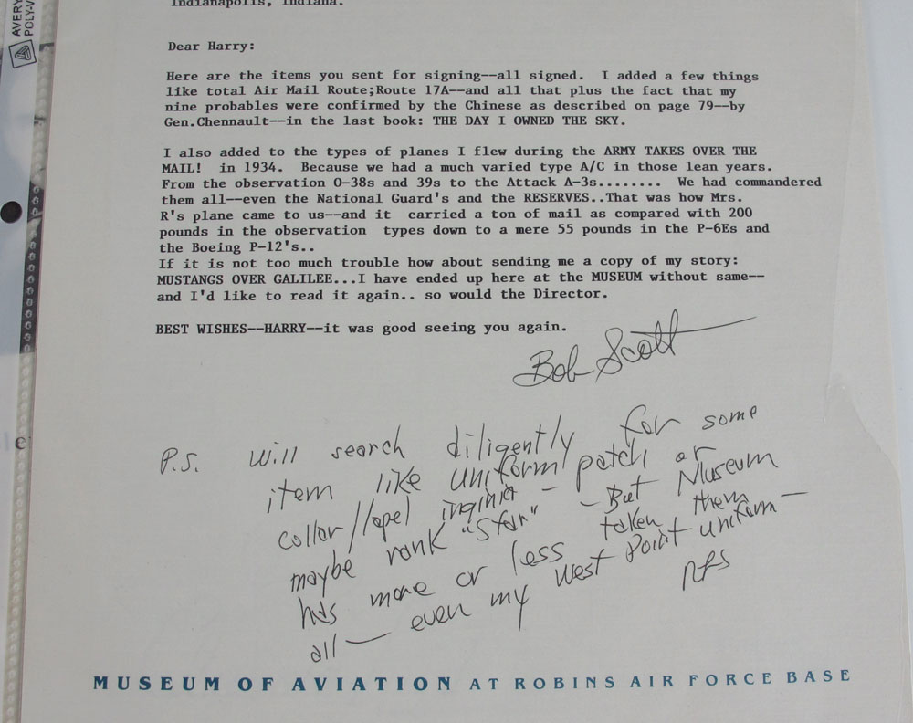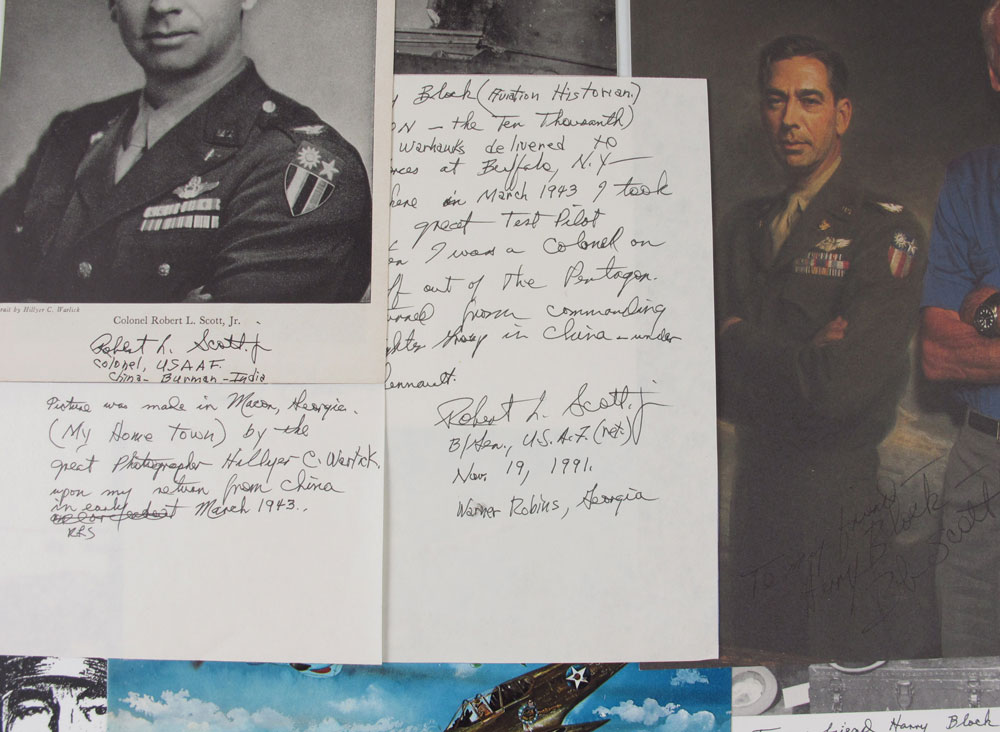 COLLECTION OF SIGNED ROBERT SCOTT AVIATION MEMORABILIA: To include signed photograph, letters, and other memorabilia. Brig. Gen. Scott was the author of God Is My Copilot and flew 388 combat missions in WWII.
