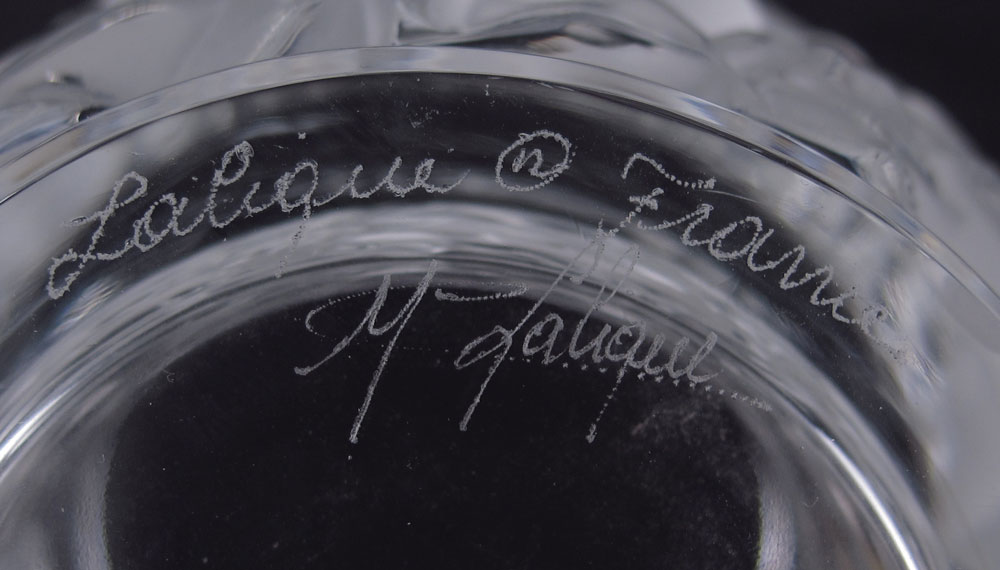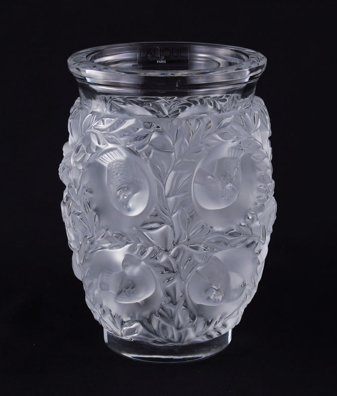 LALIQUE BAGATELLE BIRD VASE: 6 3/4'' h. x 4 1/2''. Etched Lalique France, M. Lalique and original sticker.