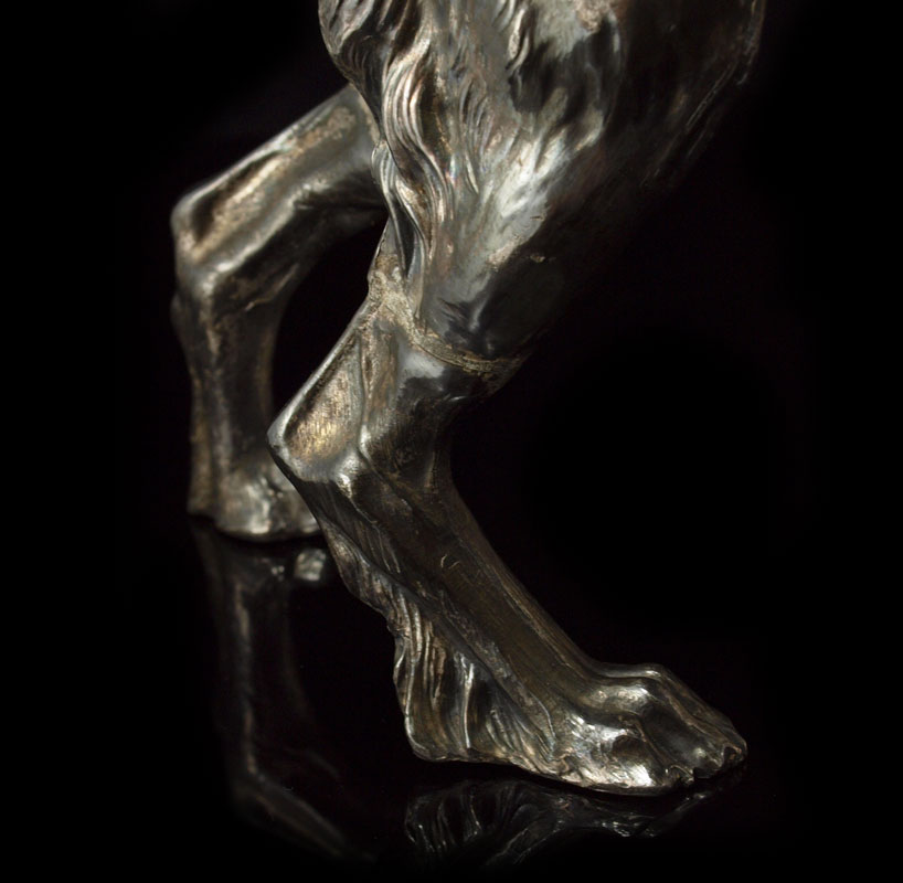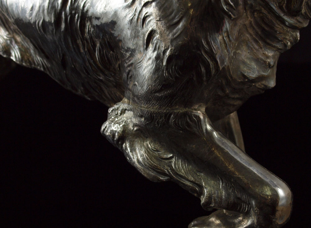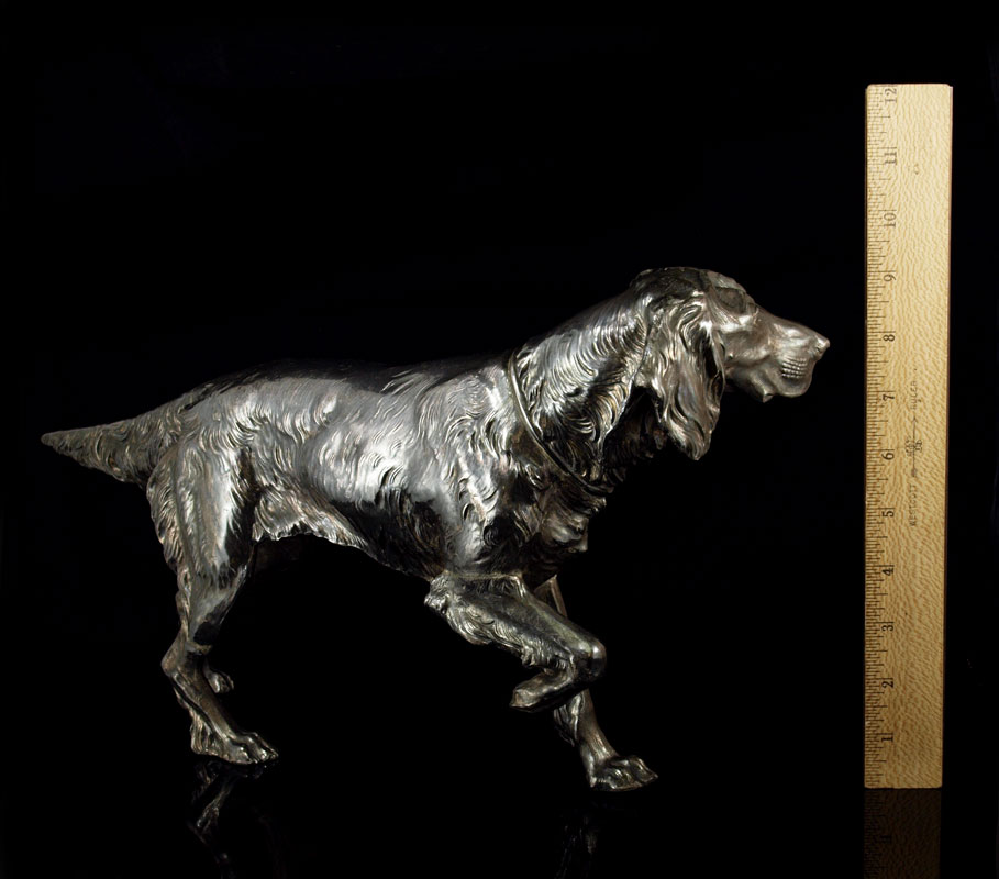 SILVERPLATE JENNINGS BROS. SETTER DOG FIGURE: Silverplate figure of a setter, marked JB 2591. Measures 9'' h. x 16 1/2'' x 4 1/2''.