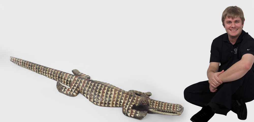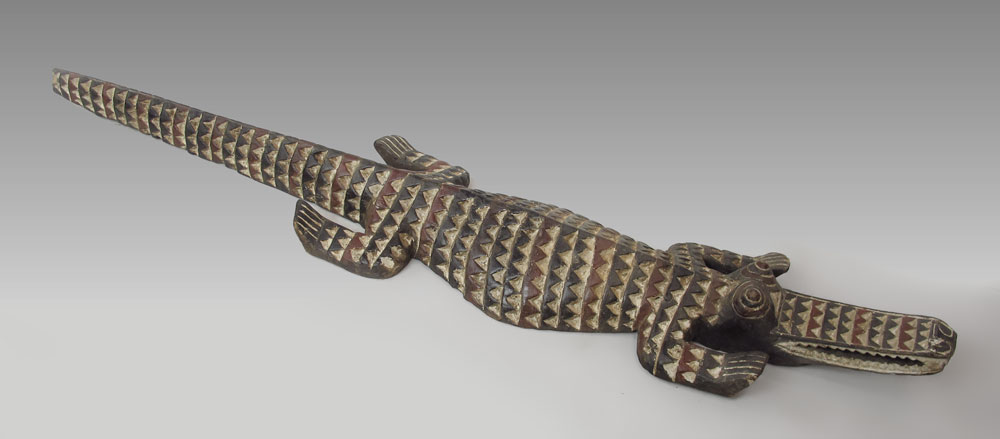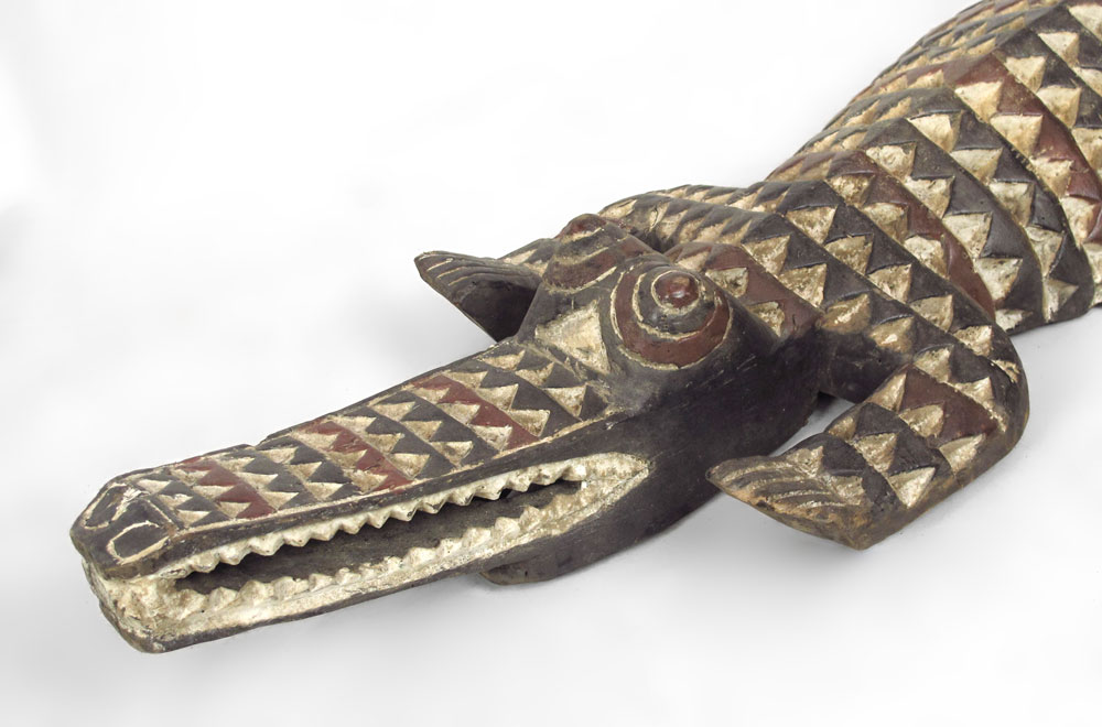 AFRICAN CARVED AND PAINTED NUNA CROCODILE MASK: Burkina Faso T, approx. 75''l. x 6 1/2'' x 15''