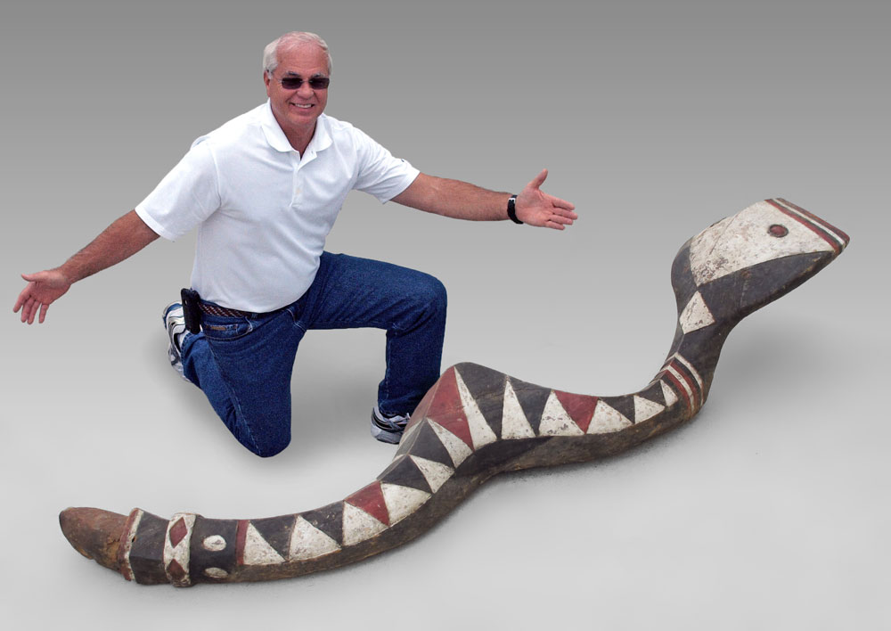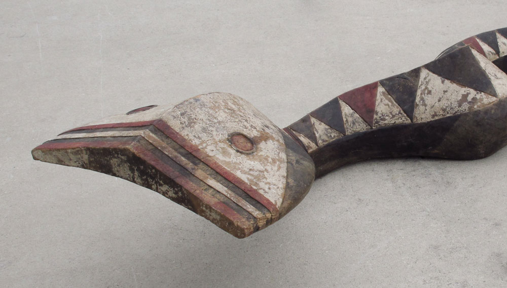 AFRICAN SNAKE: Bansonyi'' Sanke, Baga Tribe, Guinea. With metal stand measures approx. 80'' x 14'' x 18''