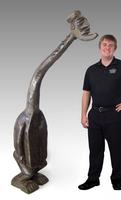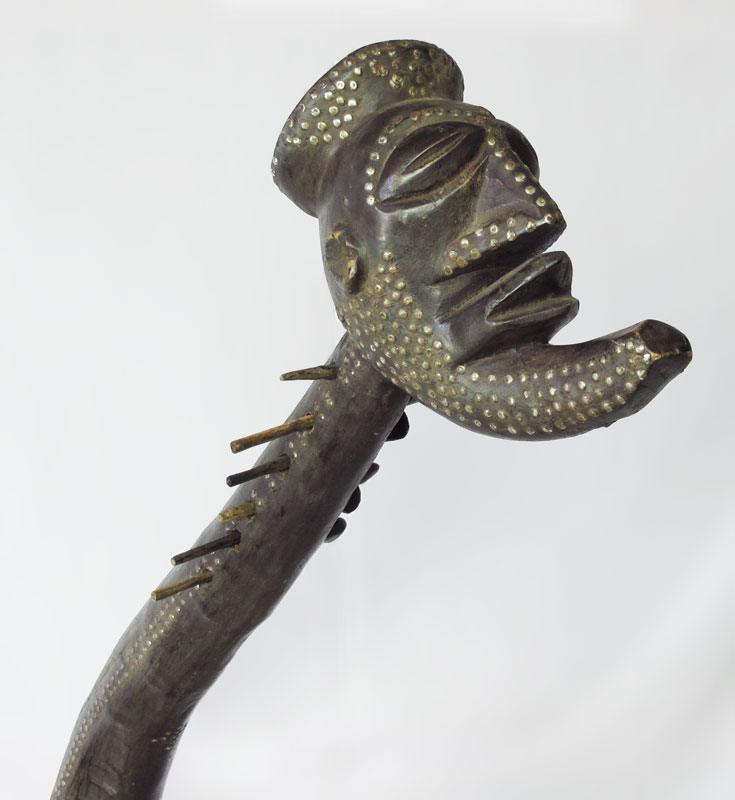 MANGBETU AFRICAN CARVED ''HARP'' INSTRUMENT: String instrument from the Democratic Republic of Congo, Mangbetu tribe. Approx. 80'' x 17'' x 44''