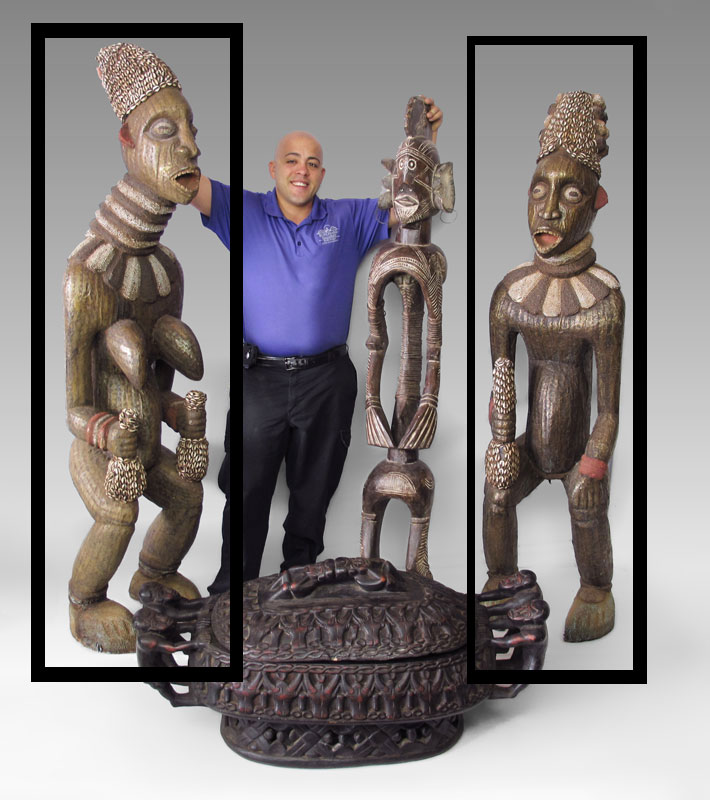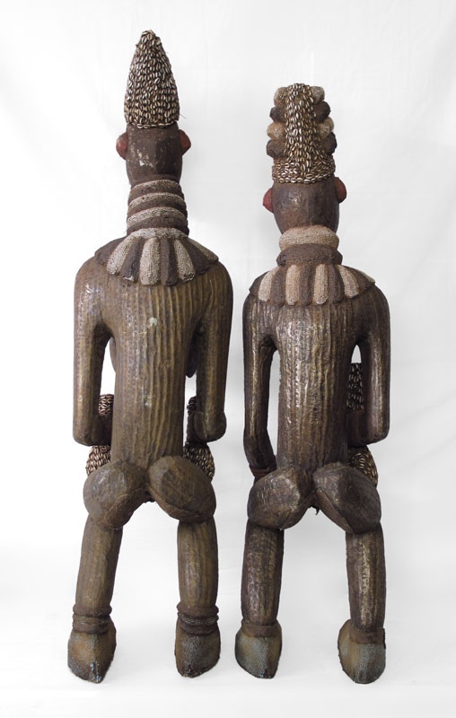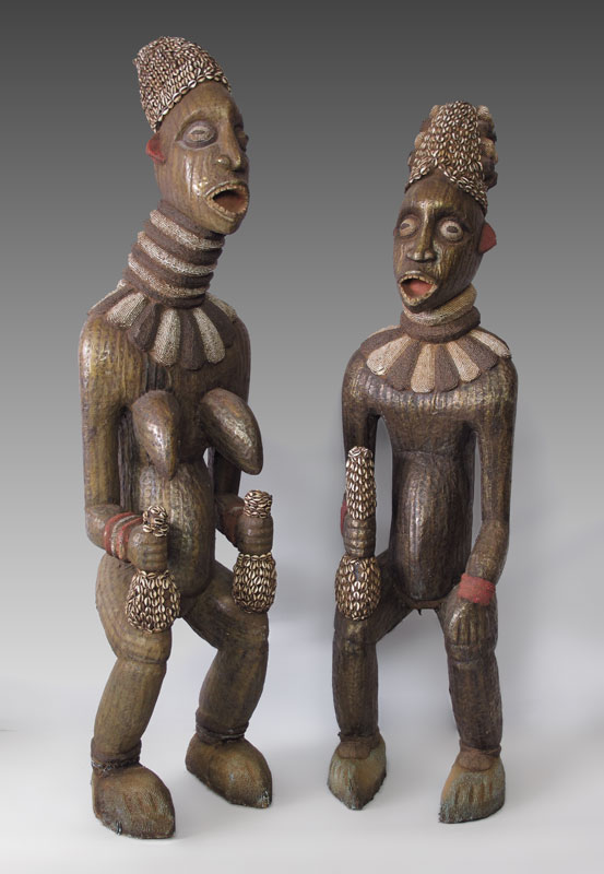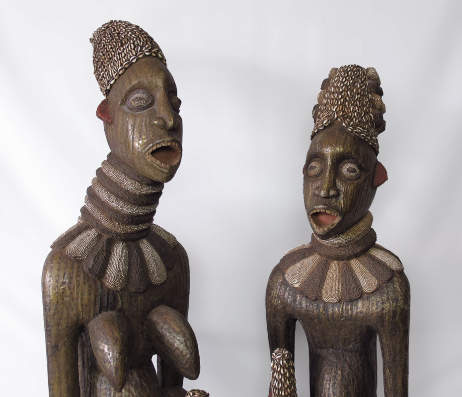 2 AFRICAN ROYAL FIGURES: Bamileke (Buanga) Tribe, Cameroon. Male measures approx. 73''h. x 18'' x 18'', female measures approx. 78''h. x 18'' x 18''