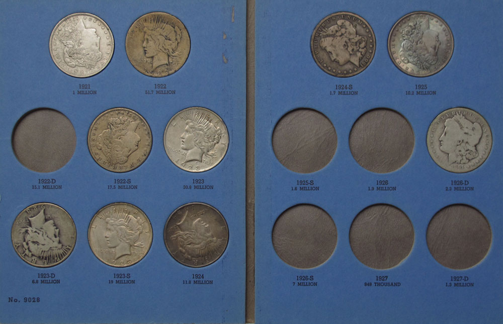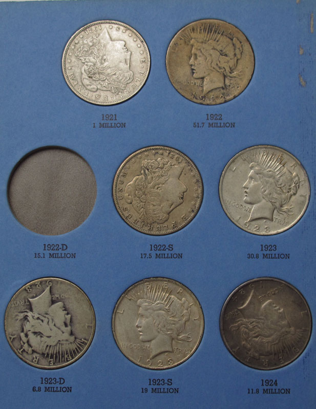 10 US MORGAN & PEACE SILVER DOLLARS: Morgan dollars to include 1885, 1891, 1900-O, 1921, 1921-S. Peace dollars to include 1922, 3 1923, 1924. Ungraded.