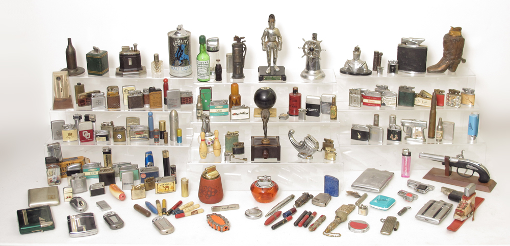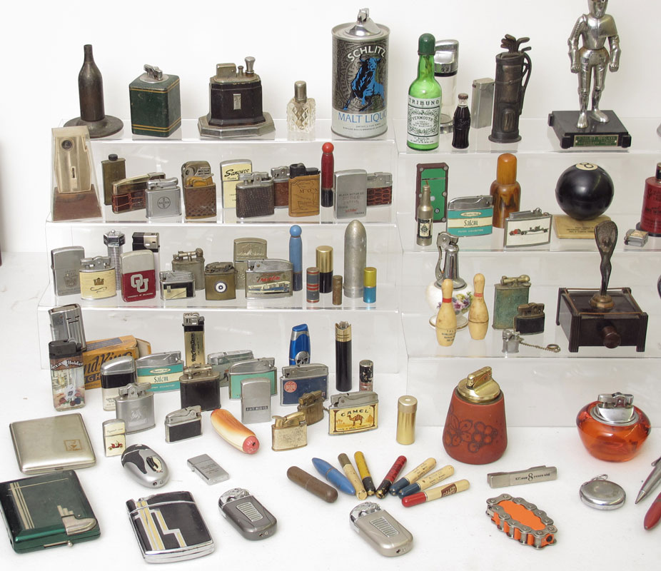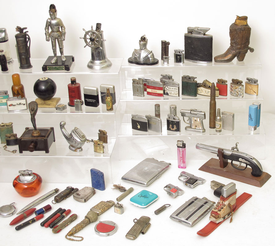 MASSIVE COLLECTION NOVELTY LIGHTERS: A lifetime assembled collection. Approx. 178 lighters including advertising, figural, Zippo and many others. Lighters range from fair condition to very good.