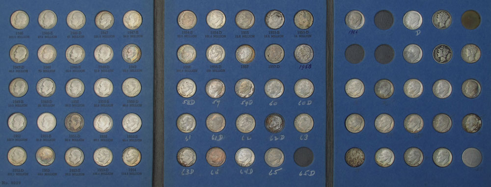 258 US SILVER DIME COINS: To include approx. 153 Mercury dimes, 105 Roosevelt dimes, plus several post 1964 dimes. Ungraded.