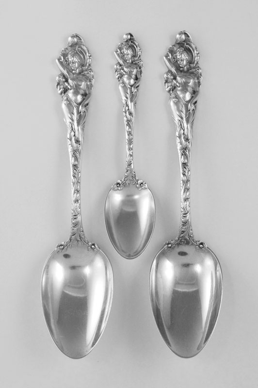 3 PIECE REED & BARTON LOVE DISARMED STERLING SPOONS: 3 pieces in the ''Love Disarmed'' pattern to include teaspoon (5 7/8''), 2 table spoons (8 1/4''). Approx. 7.2 troy oz.