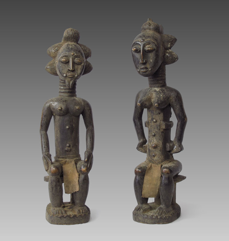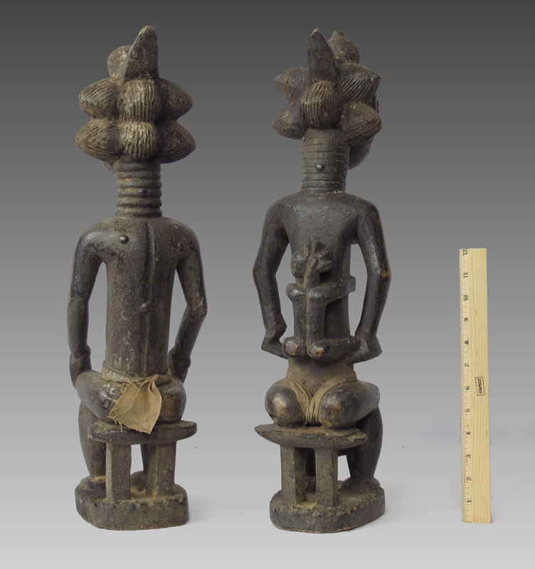 PAIR OF AFRICAN WOODEN BAULE SEATED FIGURES: From the Ivory Coast of Africa, approx. 23'' x 8'' x 7''