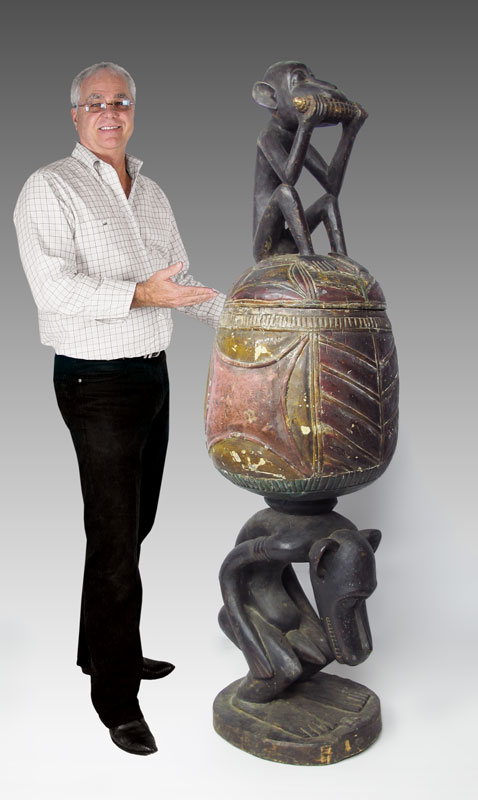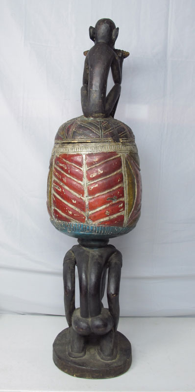AFRICAN BAULE POT WITH MONKEY BASE AND LID: Ivory Coast. approx. 66'' x 15'' x 19''