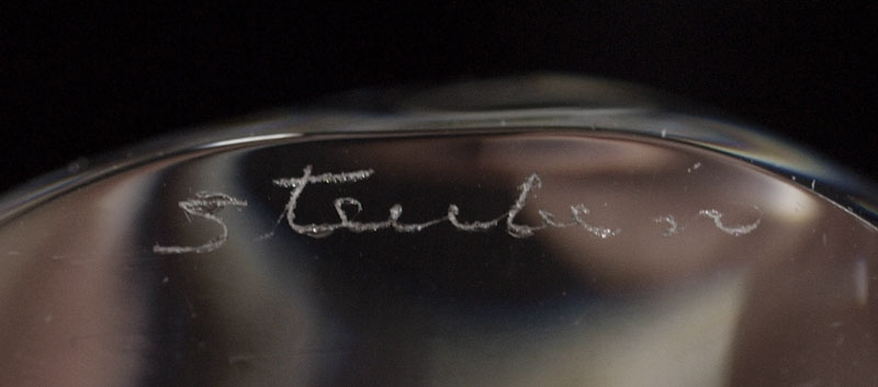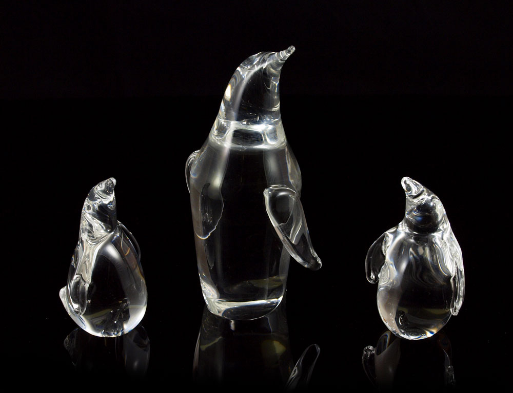 3 STEUBEN CRYSTAL PENGUINS: Mom 6 3/8'' and two babies 3 3/4'', all signed.