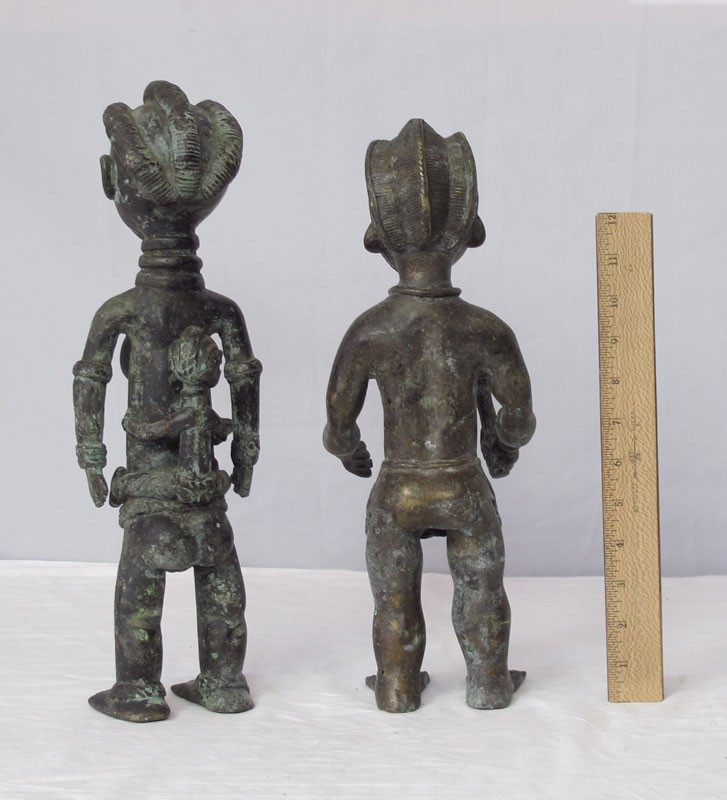 TWO AFRICAN STANDING BRONZE FIGURES, approx. 15 1/2'' x 5'' x 5'' and 15'' x 6'' x 7''