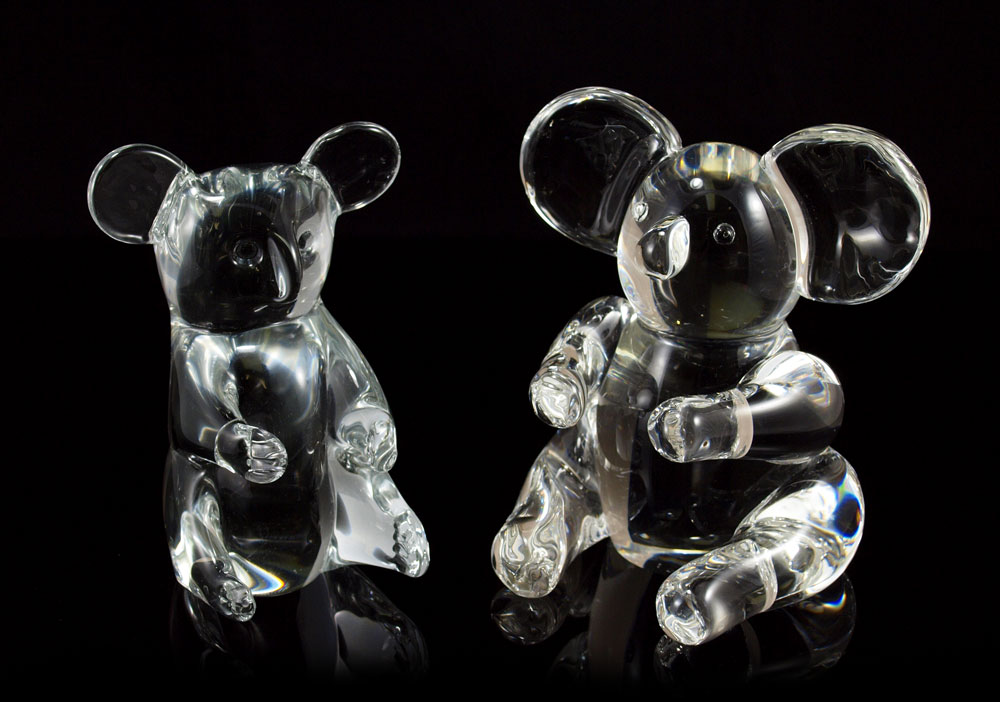 STEUBEN KOALA BEAR & RONNEBY SWEDISH CRYSTAL BEAR: Koala approx. 6 1/2''h, signed; and FH RONNEBY of Sweden crystal bear figurine, signed, approx. 5 1/2''.