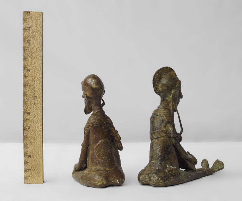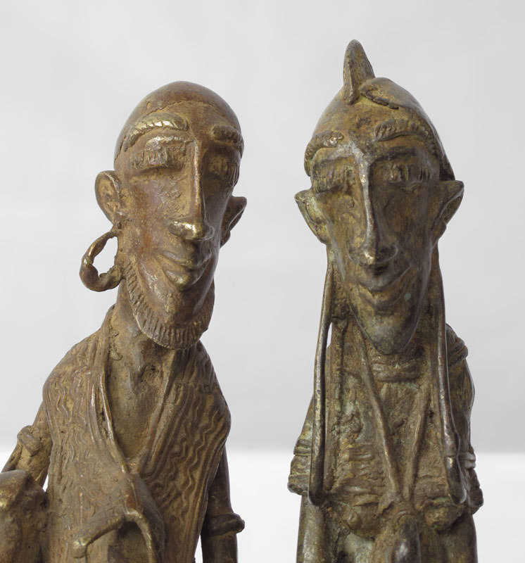 TWO DOGON AFRICAN BRONZE FIGURES: 1)8'' x 2 1/2'' x 8'' and 2)8'' x 3 1/2'' x 5''