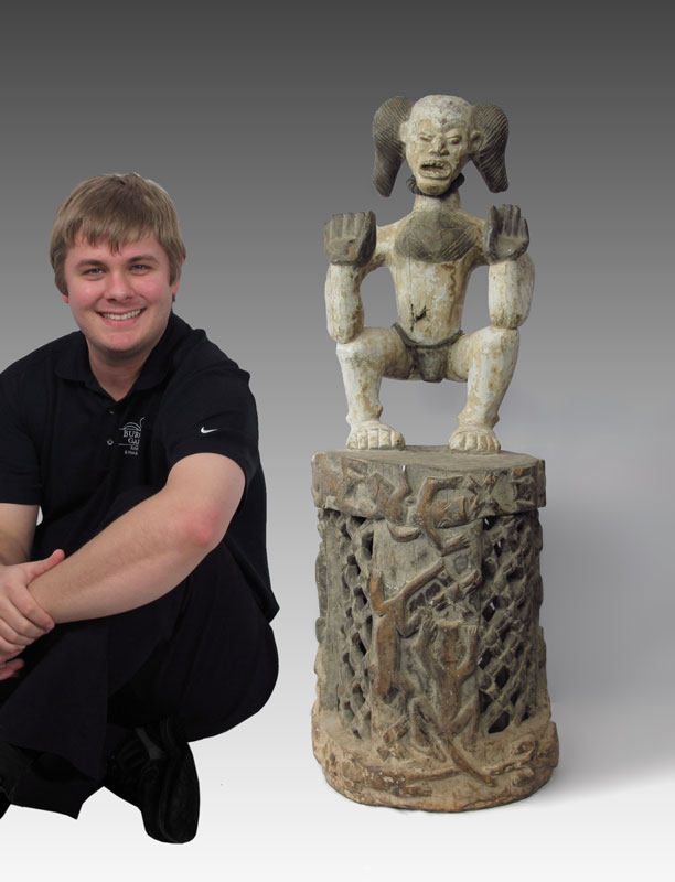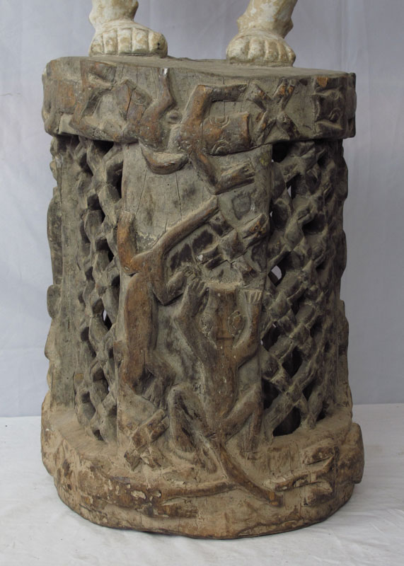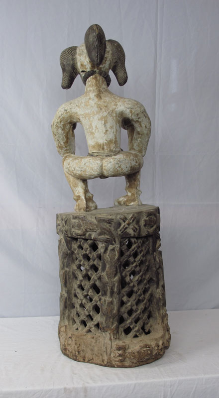 AFRICAN PUNU WHITE FIGURE ON SEAT, approx. 48 12'' x 16'' x 16''